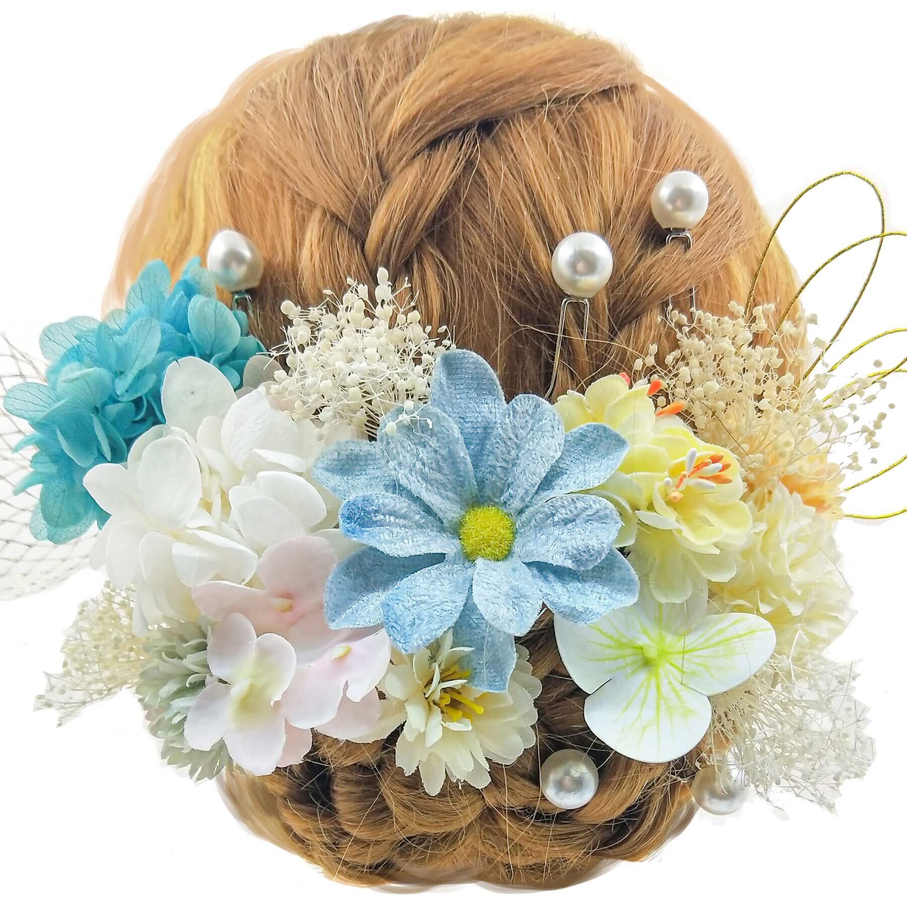 [JZOON] 髪飾り つまみ細工 7色 ドライフラワー 造花飾り 水引 ヘアーアクセサリー かすみ草 人気 和服 着物 振袖 袴 花 浴衣 成人式 七五三 結納 卒業式 入学式 結婚式 発表会