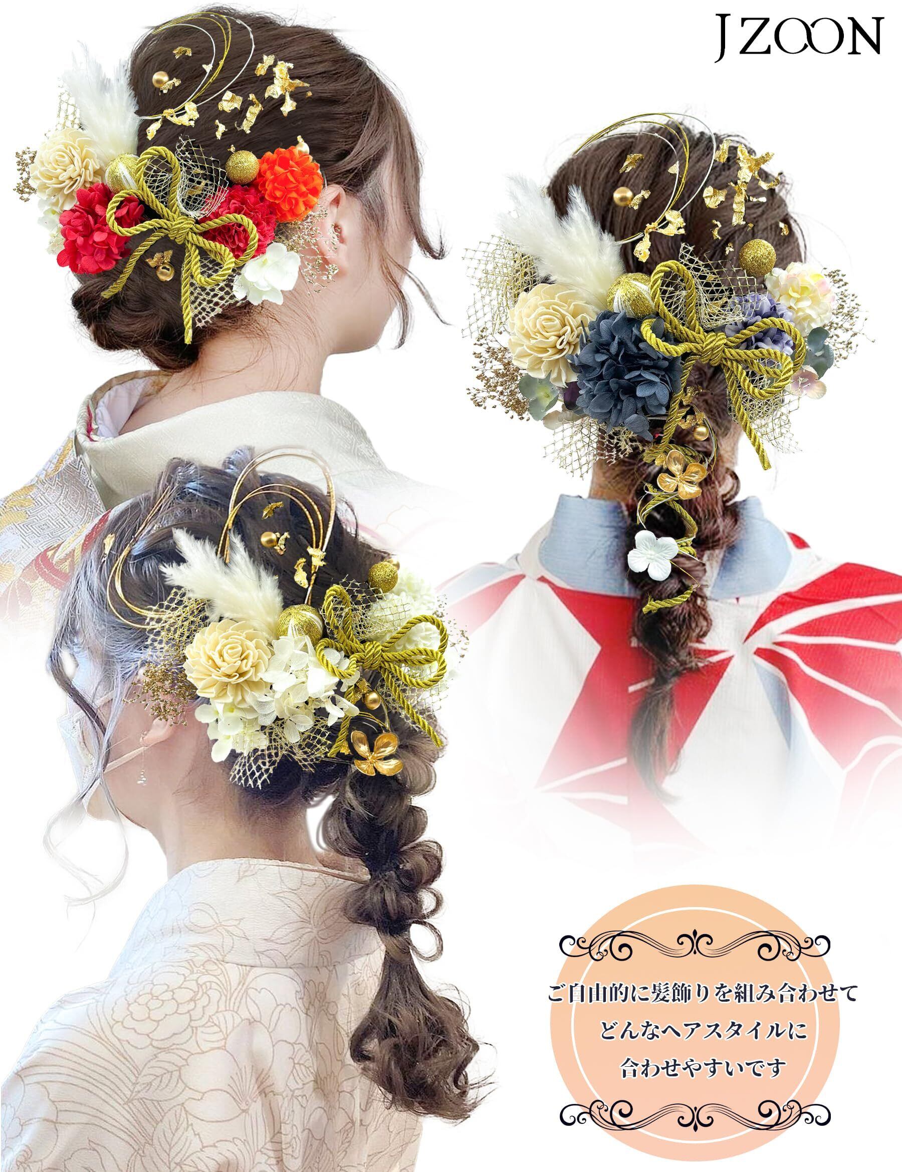 [JZOON] 髪飾り 10色 ドライフラワー 造花飾り 水引 紐 ヘアーアクセサリー 和玉 かすみ草 金箔 人気 和服 着物 振袖 袴 花 浴衣 成人式 七五三 結納 卒業式 入学式 結婚式 発表会 TC001