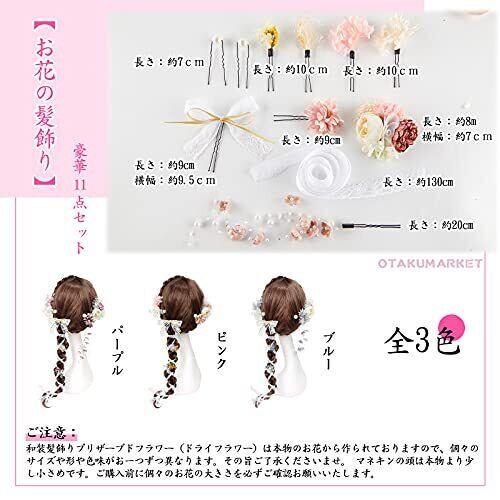 [OTAKUMARKET] 髪飾り 浴衣 成人式 七五三 髪 飾り 11点セット ドライフラワー 振袖 袴 着物 和装 卒業式 結婚式 着物 髪 飾り 髪留め つまみ細工 高級造花 ヘアアクセサリー 3カラー (赤)