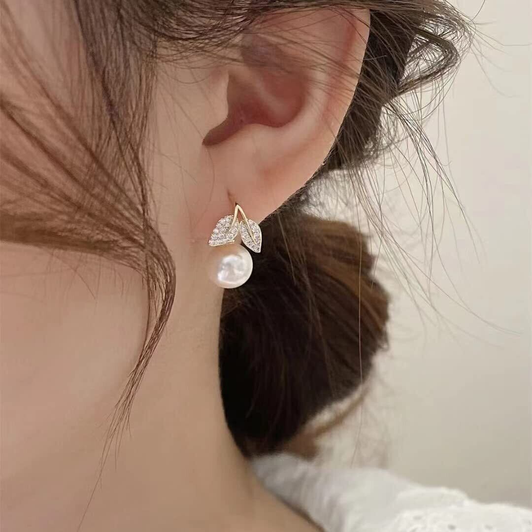 可愛いパール葉ピアス レディース 人気 金属アレルギー対応 リング ピアス18金 つけっぱなし ゆれる 大人イヤリング 耳飾り…