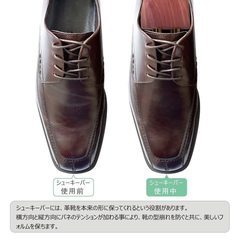 【レッドシダー素材】シューキーパーはレッドシダー100%の天然木を使用しており、そのシダーの効果を十二分に発揮させる無塗装仕上げです。天然の成分により、防臭・防虫・芳香・吸湿効果の高い、また、天然レッドシダーは変形、変質しにくく耐久性に優れた素材ですので、長期にわたり使用できます。ご承知:天然の素材(木)を使用しているため、色のバラツキがあります。商品の色や質感を出来るだけ忠実に再現するよう心がけていますが実物と若干異なる場合がございます。