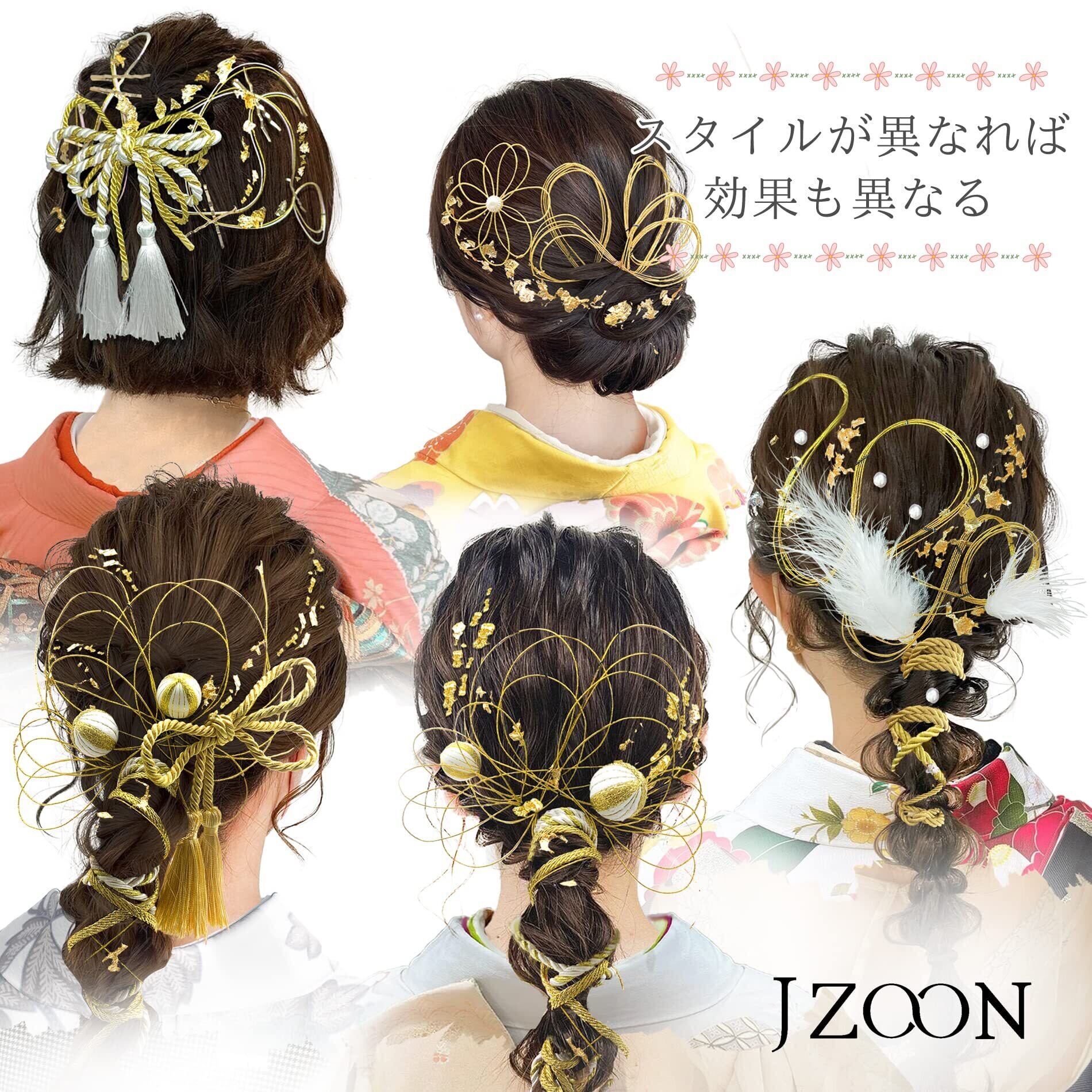 [JZOON] 髪飾り 成人式 水引 金箔 銀箔 組紐 人気 ロープ ゴールド シルバー ヘアアクセサリー 前撮り 振袖 卒業式 結婚式 和装 袴 着物 浴衣に ブライダル 花嫁 ヘッドパーツ J0026