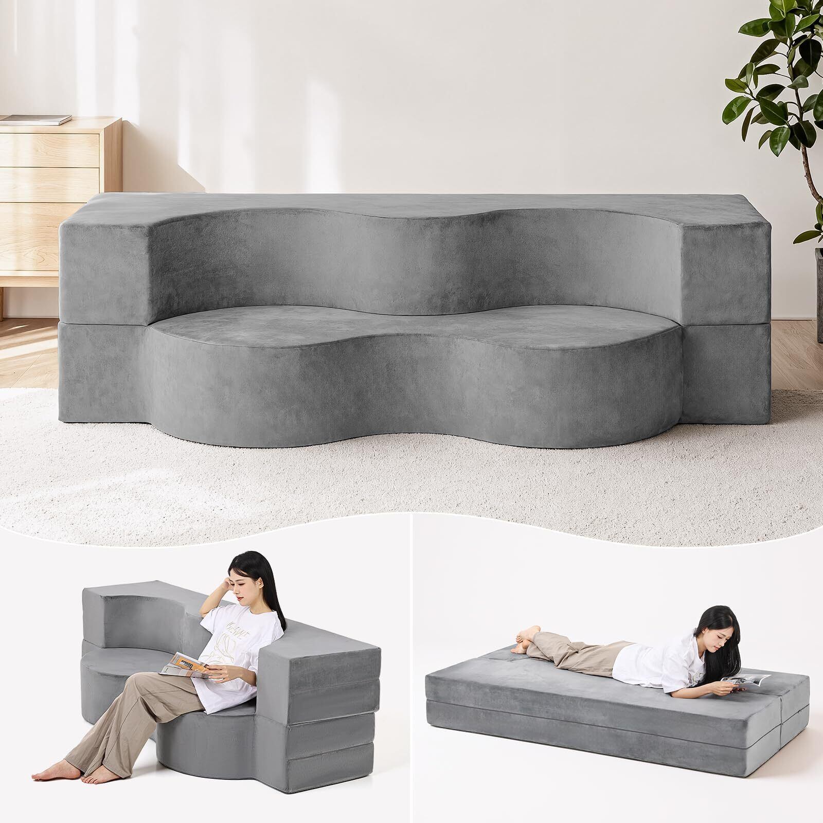 ✨【ソファー&ベッド2WAY、瞬間切り替え】折りたたみ式だから面倒な組み立て一切不要!簡単操作でソファからベッドへ自由に切り替えできるソファーベッドです。 ソファスタイルでは背もたれがしっかりフィットし、長時間でも心地よく読書や映画鑑賞。 フルフラットにすれば広々ベッドに早変わり!家族の仮眠や突然の来客にも即対応。