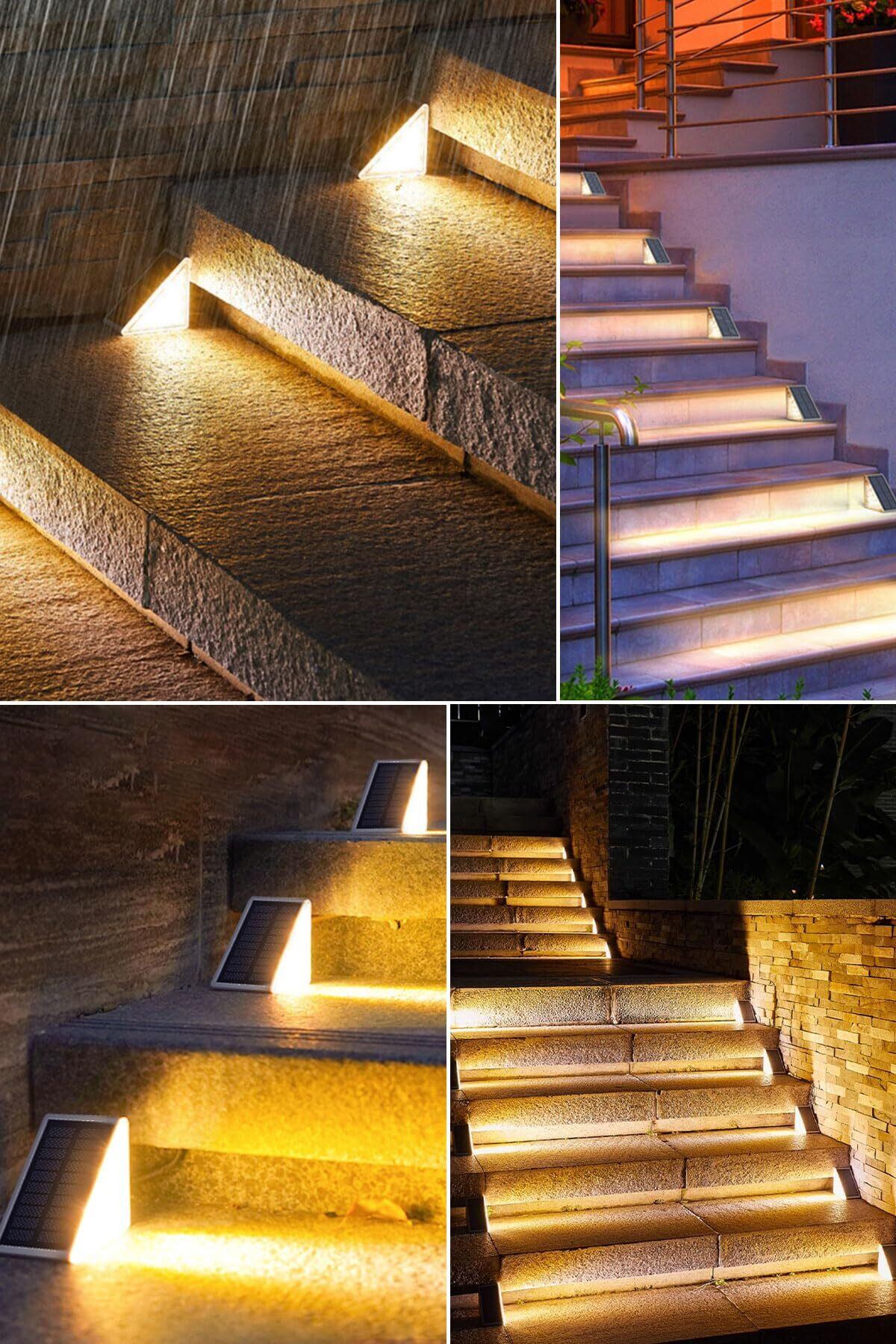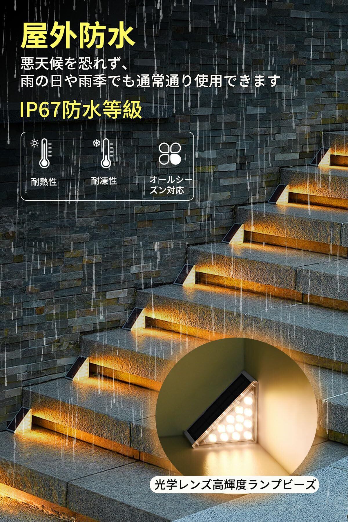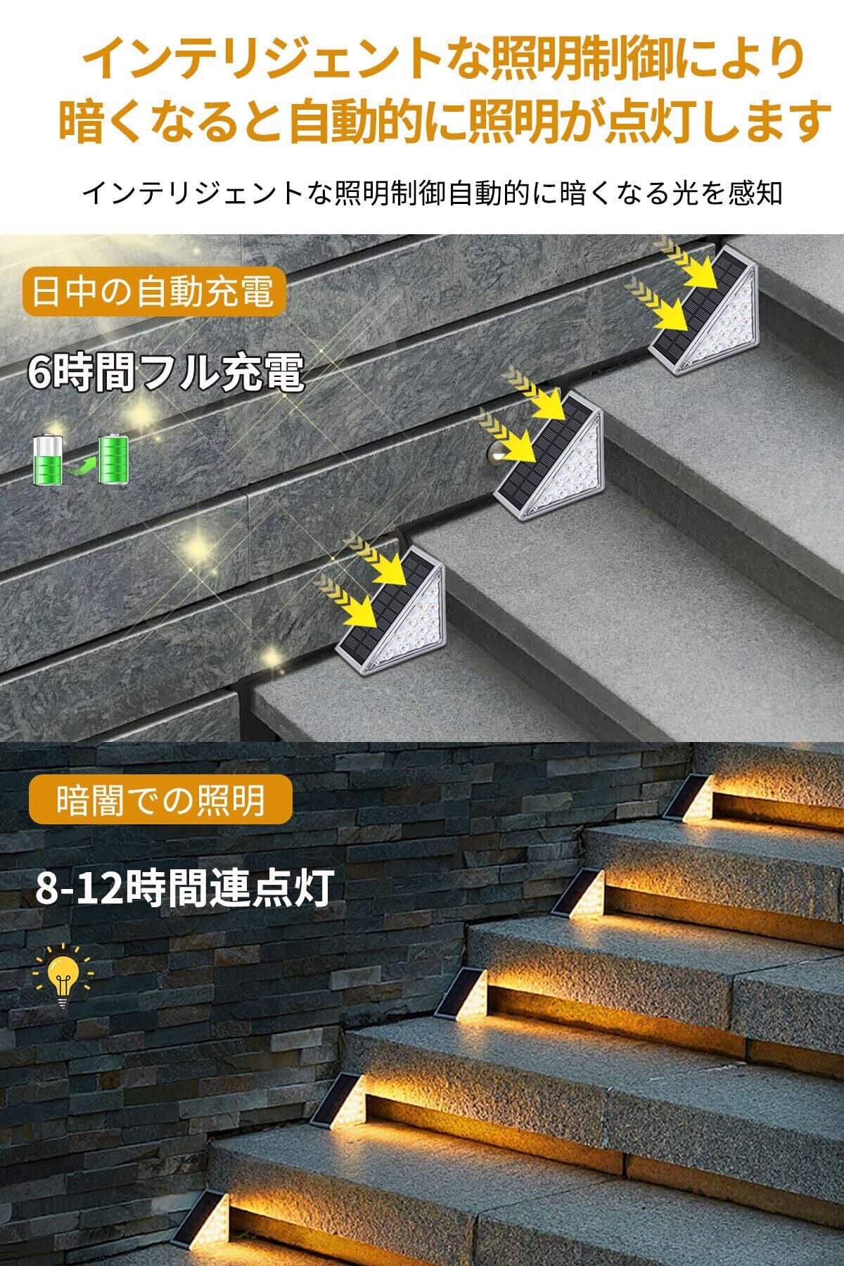 階段ライト ガーデンライト ソーラーライト ステップライト 屋外 防水 IP65 庭 自動充電 自動点灯 夜間作業 太陽光発電 光センサー 簡単取り付け 接着剤&ネジ対応 玄関先 庭 通路 車道 芝生 駐車場に最適 (白い光, 2)