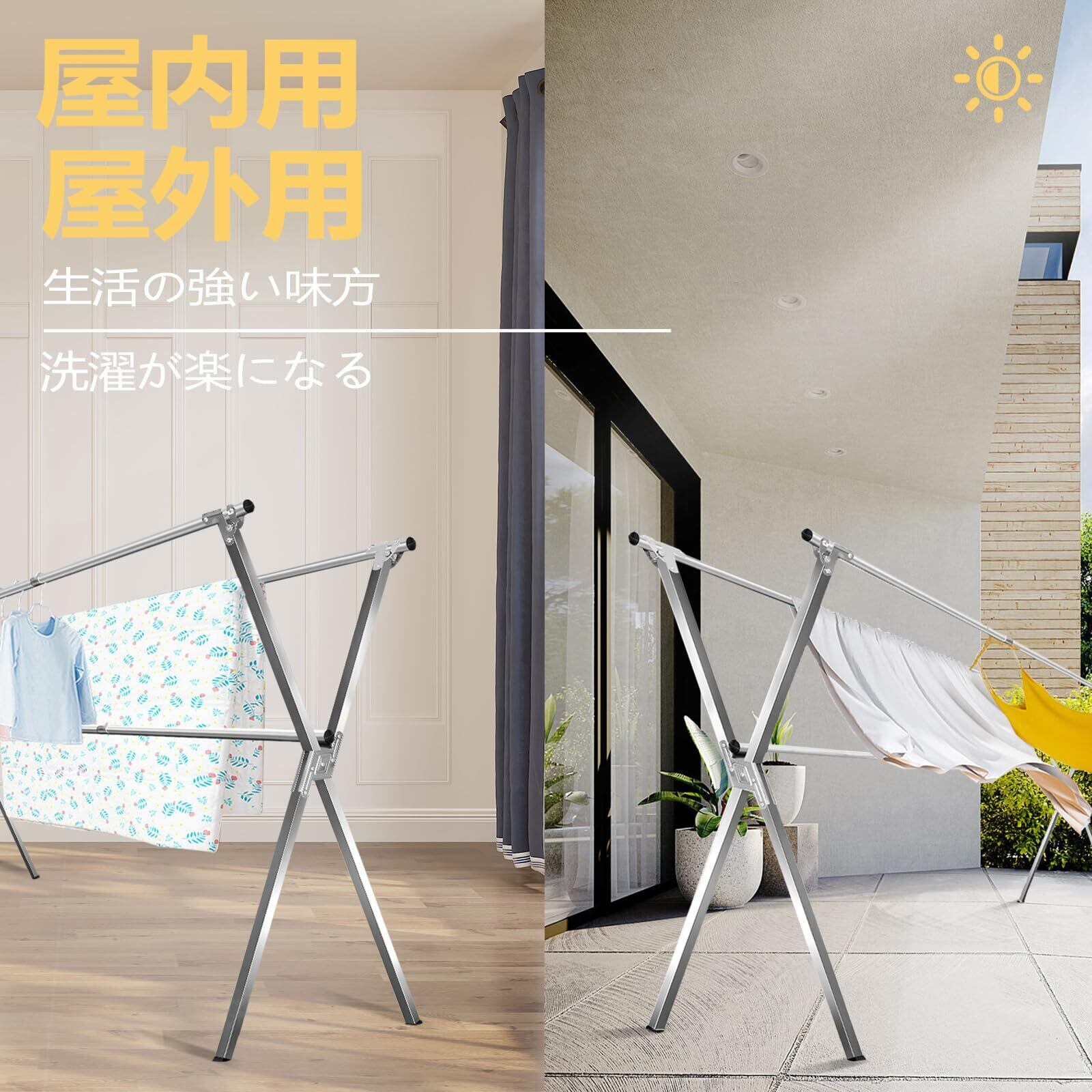 省スペース設計: 室内物干し 折りたたみは箱から出してすぐ使用可能。組み立て不要で、立てるだけで乾燥開始。軽量ながら頑丈なステンレス製。使わない時は隅やクローゼットに収納可能