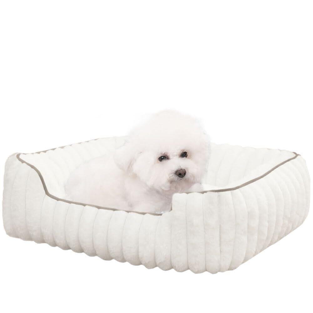 ふわふわして暖かいスクエア型のペットベッドがこれから登場します!猫ベッド内側のもふもふ柔らかい短毛で快適でぐっすり眠れます。ボールドのストライプのデザインで見た目が可愛いです。厚手で夏の冷房対策や秋冬の防寒対策に活躍できる通年タイプのペットベッドです。
