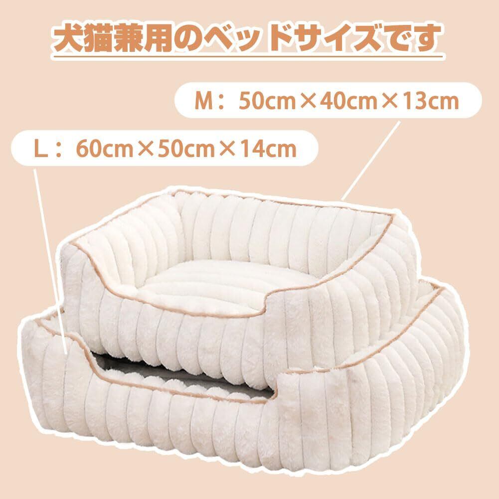 犬猫兼用のベッドです。M、L二つのサイズがあります。M:50×40×13(cm) L:60×50×14(cm)サイズは外側の寸法です。ご愛犬・愛猫の体重と体型によりお選びいただけます。ホワイト、カーキ、グレー、ピンクの四色から展開し、ご愛ペットの好みに選んでいただけます。ご注意:撮影環境やパソコンのディスプレイなどの影響により色が若干違って見える場合もあります。