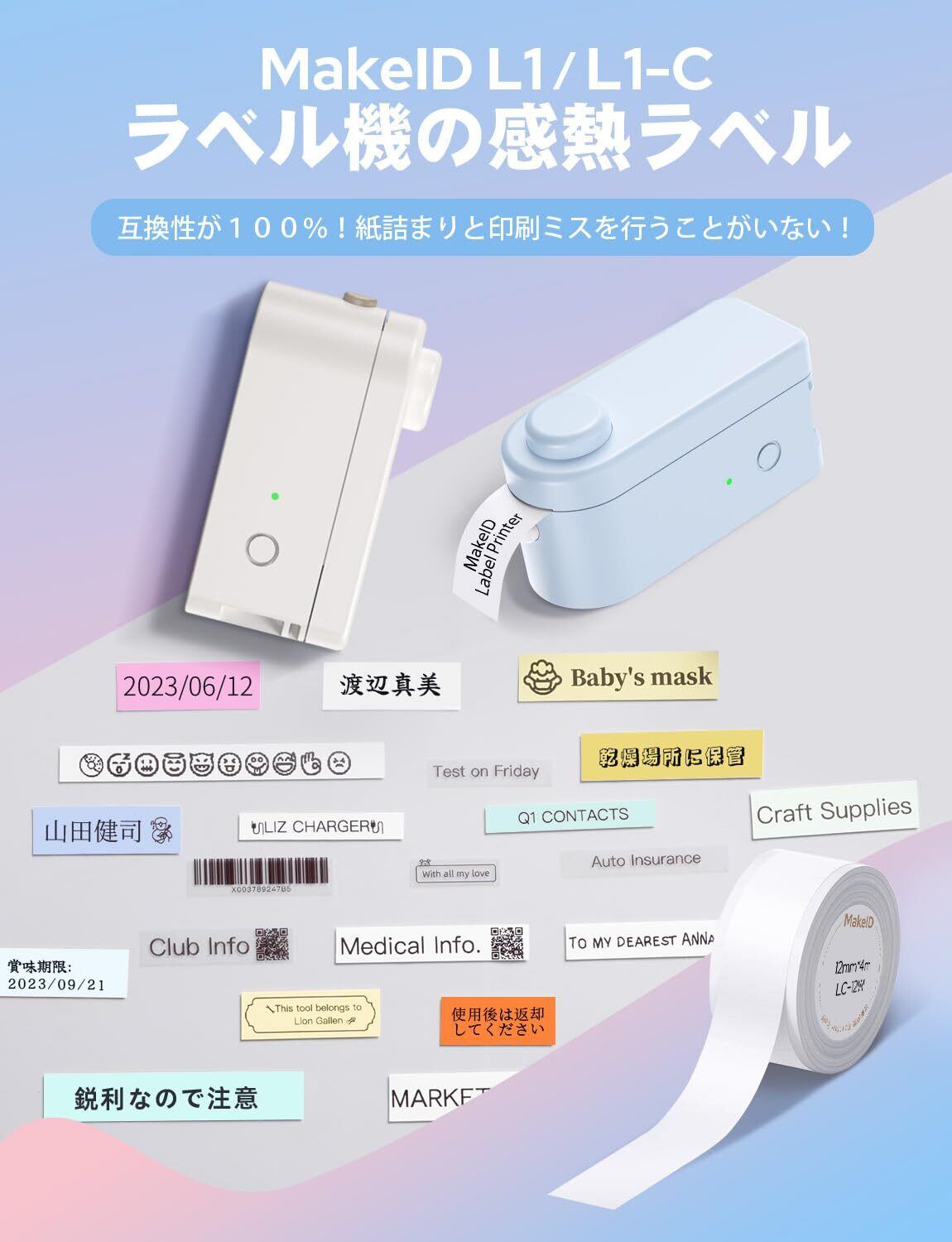 MakeID L1・L1-C感熱ラベルプリンター対応。サイズ:幅12mm×長さ4m。数量:1巻。