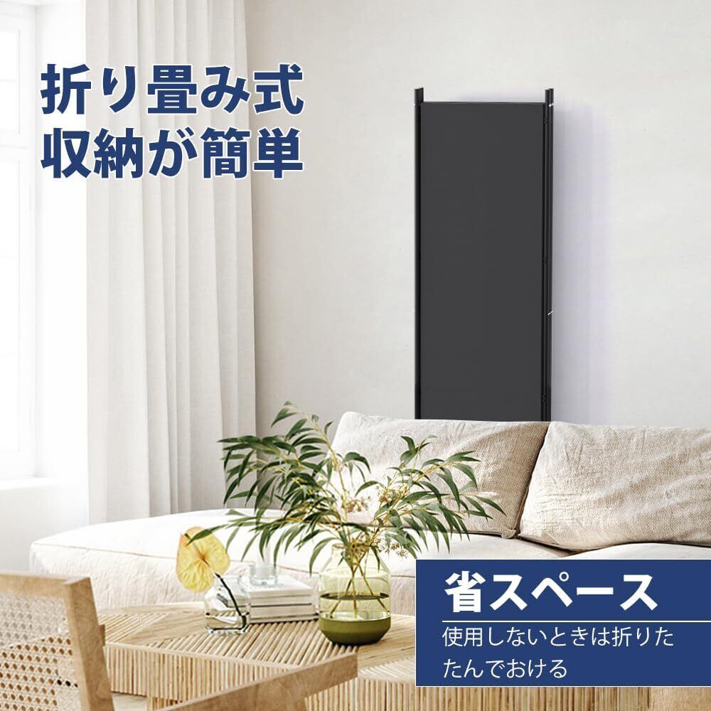 Kokorona パーテーション 間仕切り 4連 カバーストリップ付き自立式 高さ178cm 幅223.5cm 衝立パーテーション スクリーン 折りたたみ 布タイプ 屏風 目隠し 区切り 衝立 軽量 オフィス 事務所 ブラック