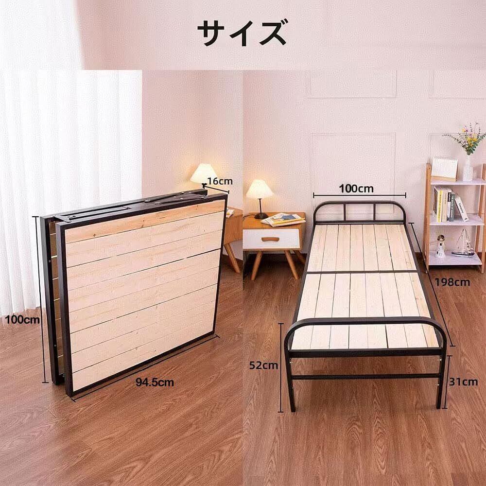 折りたたみベッド シングル 完成品 LORAK 耐荷重200kg 炭素鋼ベッドフレーム 天然パイン材 脚部にきしみ防止パッド付き モデルLR-BD01 (幅100cm)