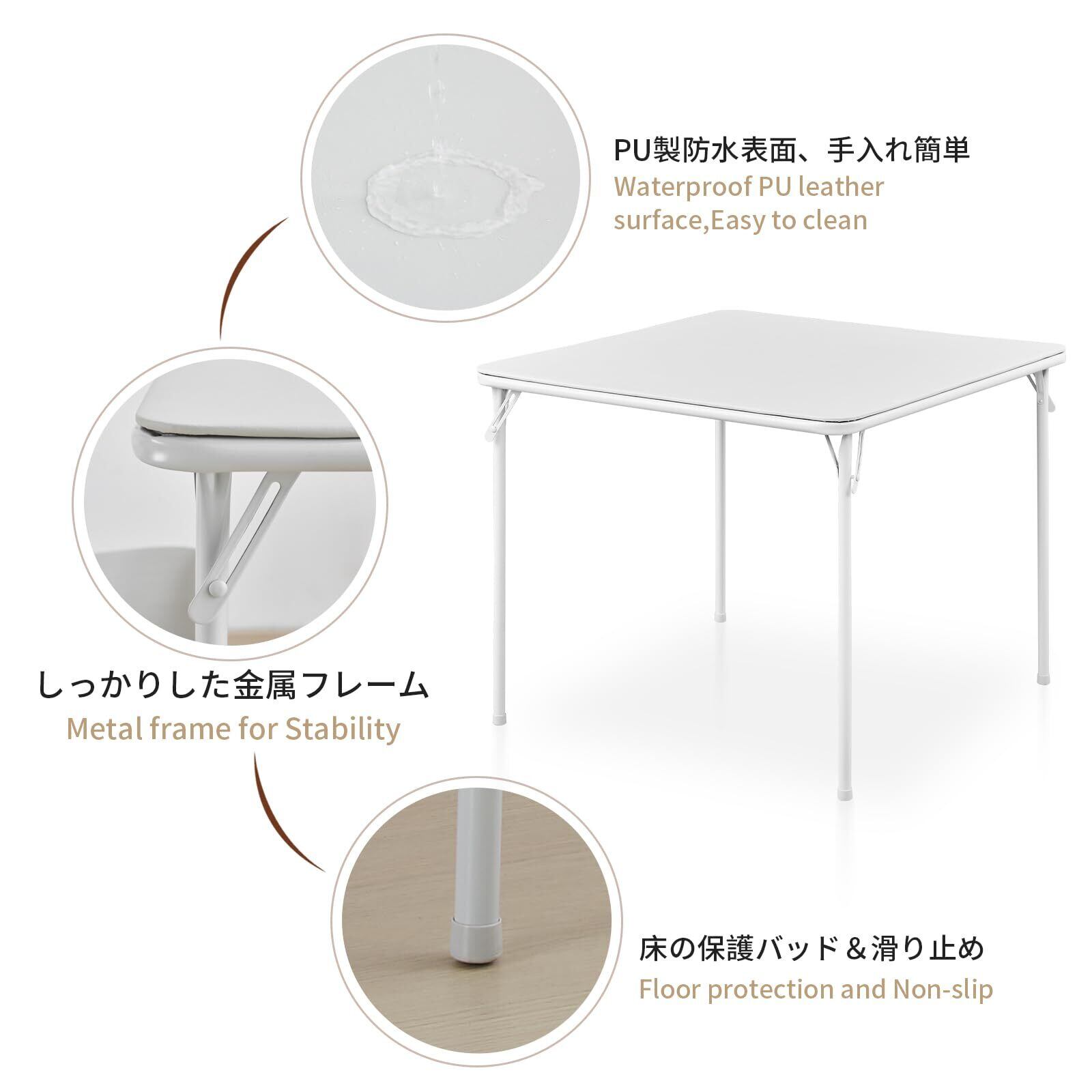 BOOSDEN 折りたたみテーブル 正方形 食卓 麻雀卓 ダイニングテーブル 四人用 テーブル 作業台 パズル 机 パソコンデスク 省スペース アウトドア 室外 リビング ゲーム 組立不要 多機能 シンプル オフホワイト 85cm