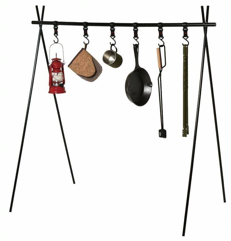 ●取外し可能なフックが6個付いており、食器や調理器具、トングやシェラカップなど、散らかりがちなアウトドアツールをまとめてスッキリ掛けることができます。テーブル周りを広く使えるので、キャンプサイトを快適に整えられます。