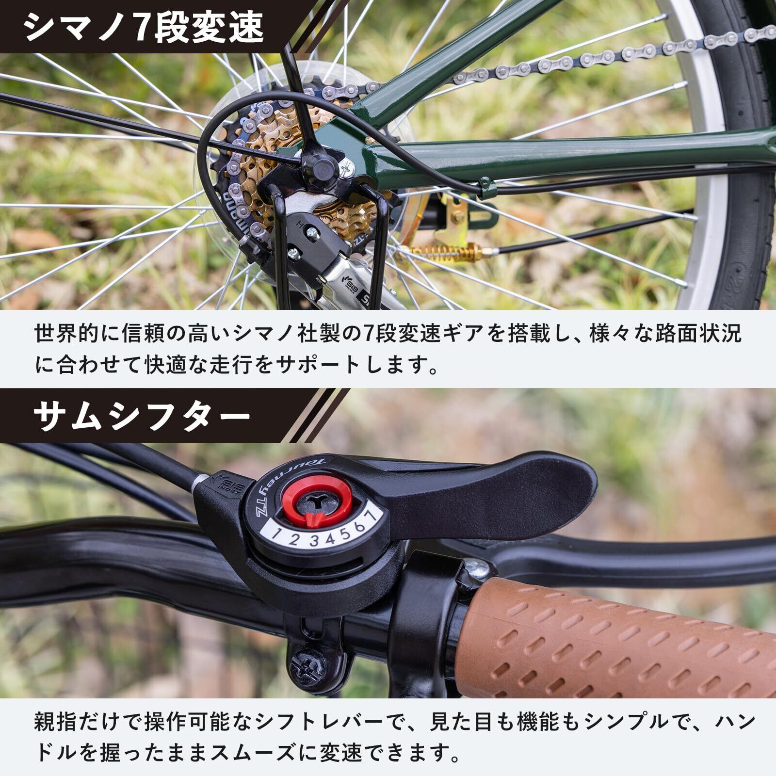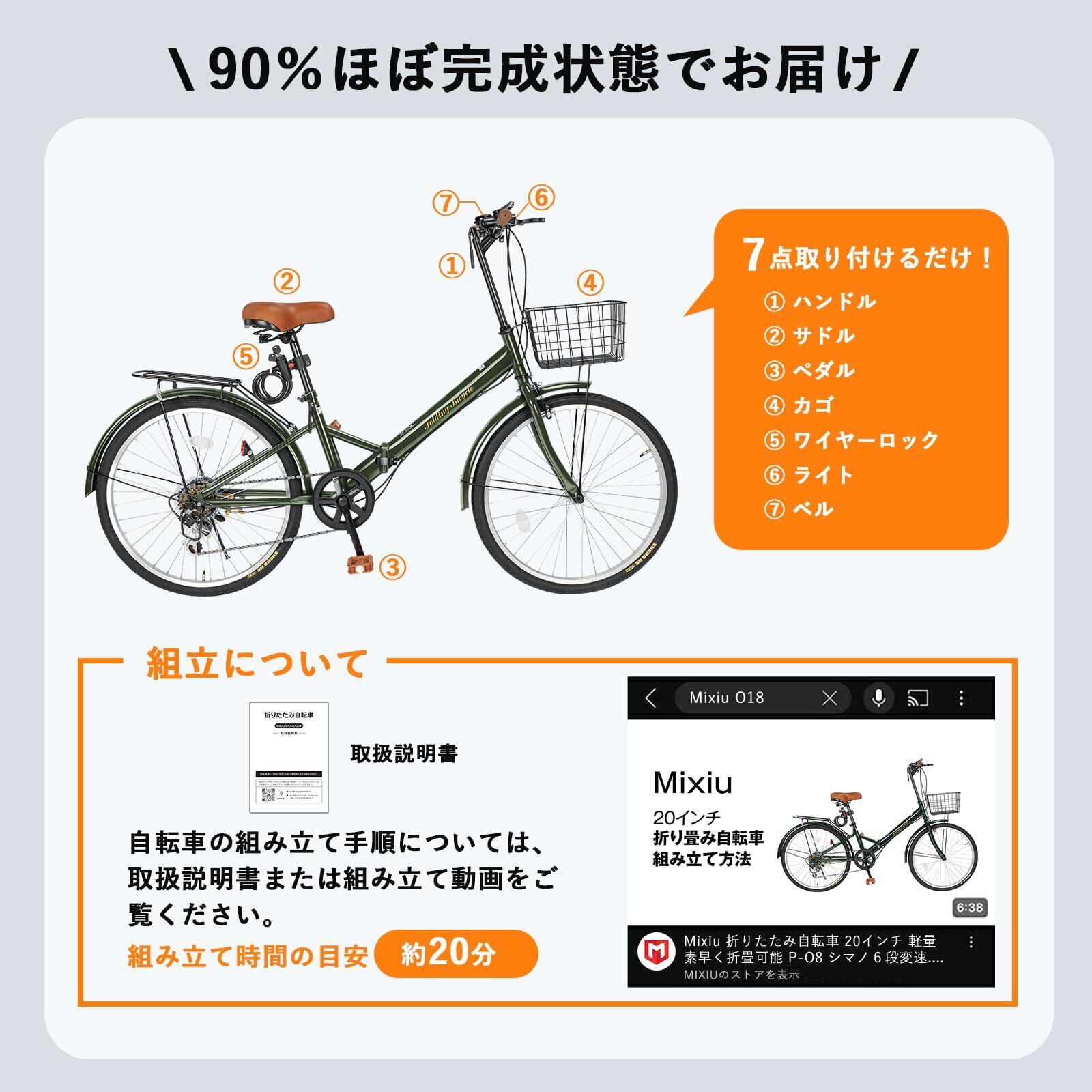 Mixiu 折りたたみ自転車 シマノ7段変速 高炭素鋼フレーム 折り畳み自転車 20インチ/24インチ 厚めのサドル リアキャリア・カゴ・ライト・ワイヤーロック・空気入れ付き 軽量 自転車 通勤 通学 街乗り 男女兼用 (オリーブ, 20インチ)
