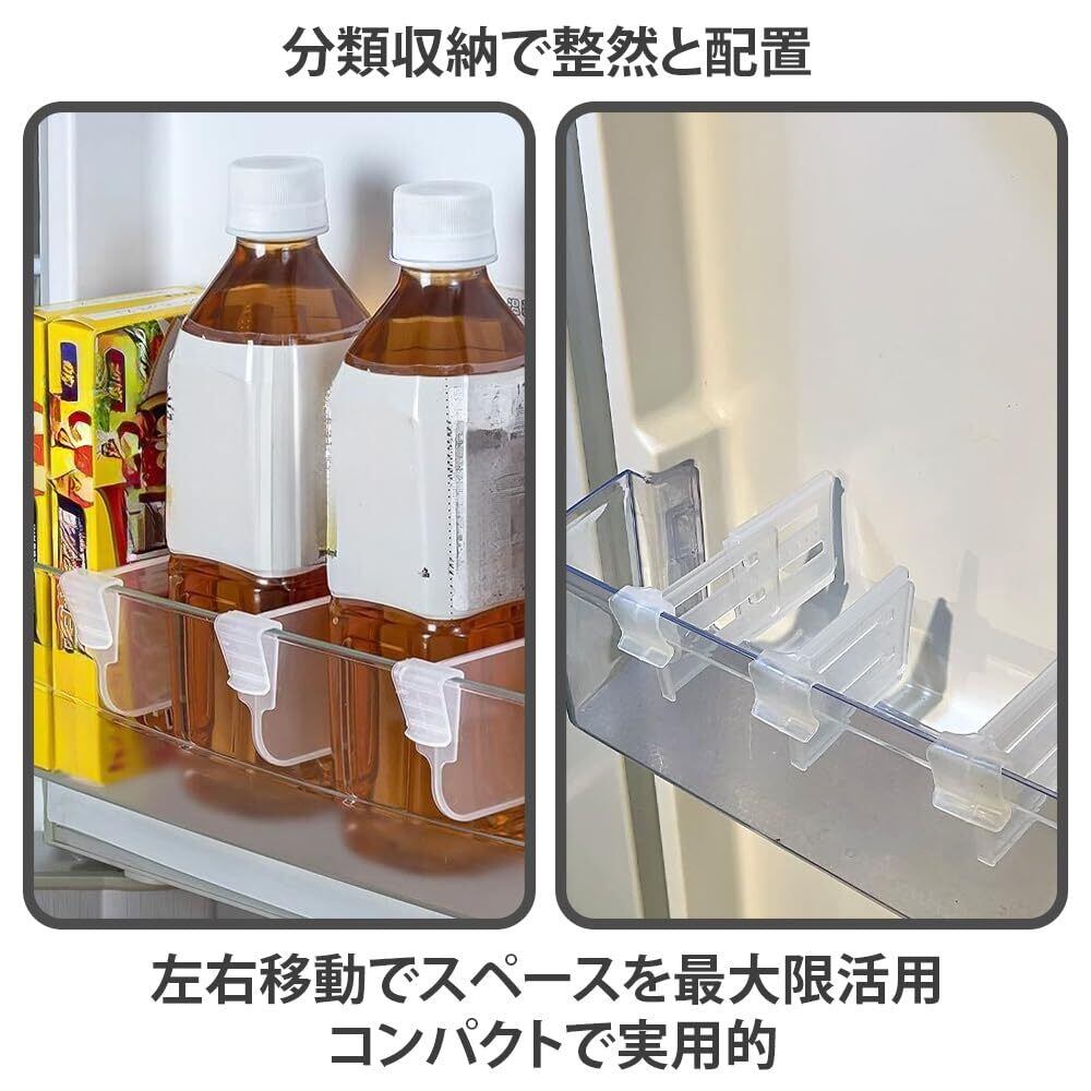 冷蔵庫仕切りクリップ 10個入り 伸縮可能冷蔵庫の仕切り クリップス 自由調整間隔 ワンタッチ取付け 伸縮可能 多用途 きれいに整理 分類収納 小物入れ 台所用品 食品収納 冷蔵庫用仕切り板 透明