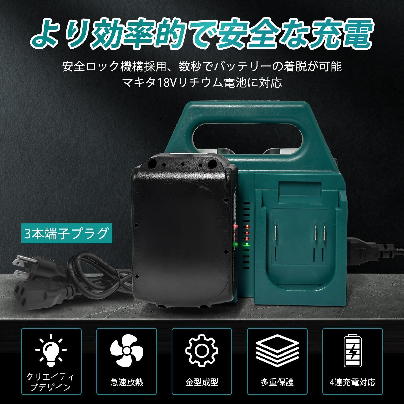 【マキタ 18Vバッテリー対応】, 【効率的な収納で持ち運びも楽々】, 【収納と充電の2-IN-1】, 【耐摩耗性・高耐衝撃ABS素材】, 【過電圧/過電流/過電…