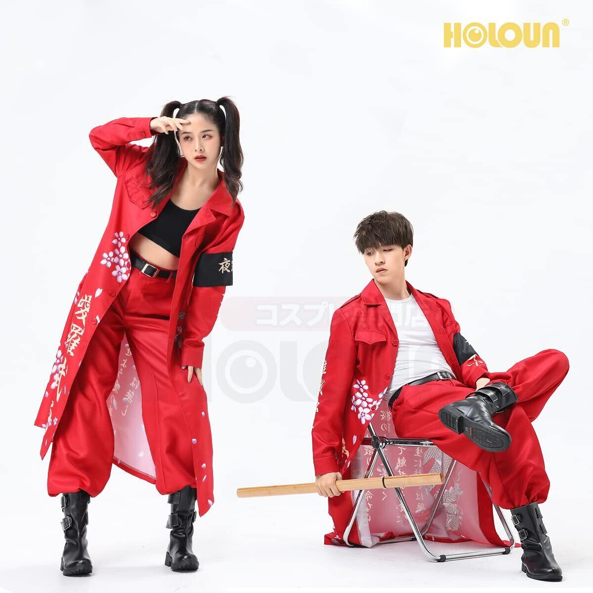 [HOLOUN] ハロウィン特攻服コスプレ衣装 印刷スタイル暴走族 舞台装 演出服 文化祭 撮影 祭り Cosplayハロウィン仮装 アニメ祝日贈り物 (赤い XS