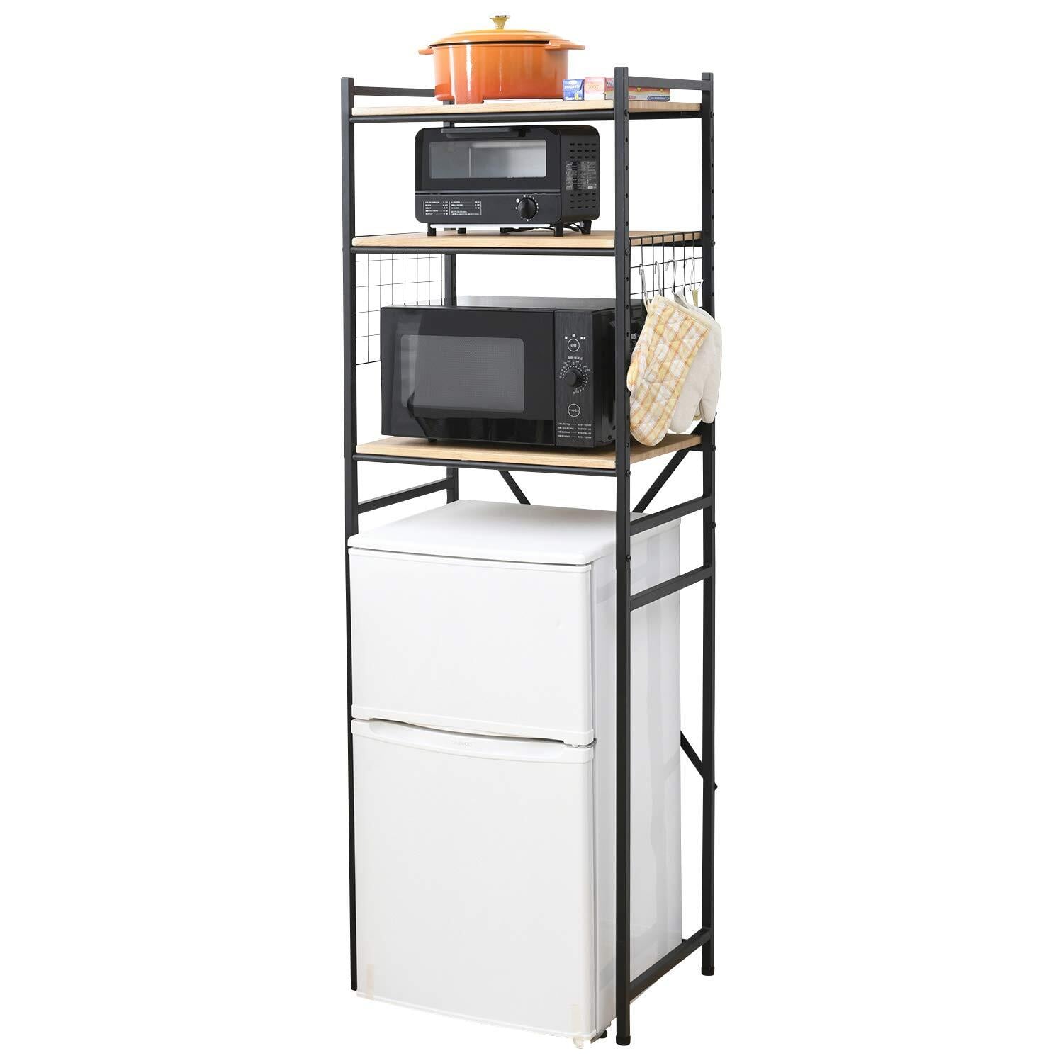 山善(YAMAZEN) レンジラック (冷蔵庫ラック) 小型冷蔵庫対応(幅59.5×奥行41.5×高さ180cm) 棚板高さ調節可 フック4コ付き レンジ台 ラック 組立品 ブラック RUR-18(OAK/SBK)