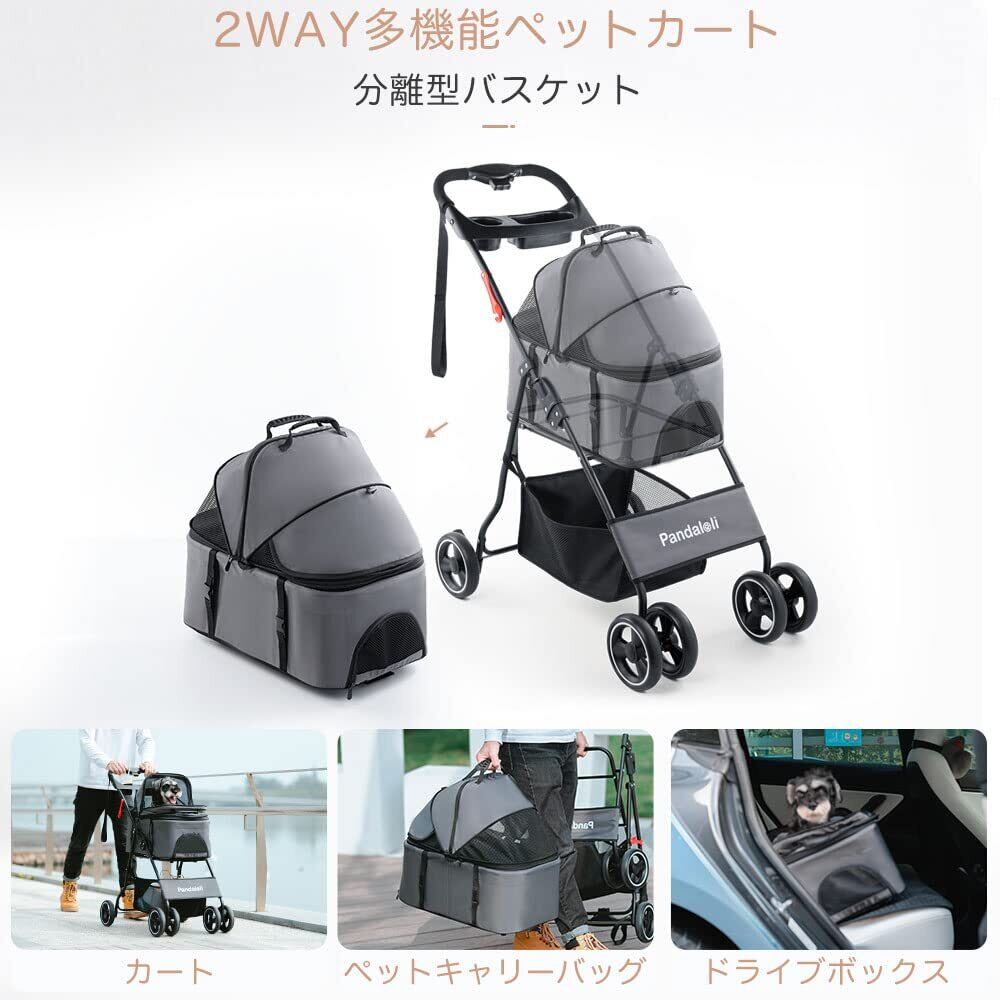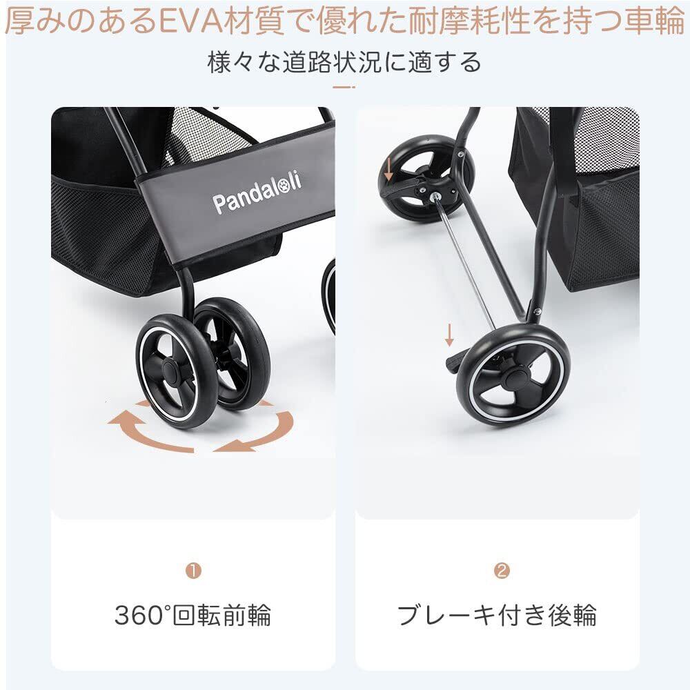 Pandaloli ペットカート ベビーカー 犬 バギー:小型犬 中型犬 猫 多頭 カート 4輪 軽量コンパクト 飛び出し防止リード2本付き 前輪360°回転 後輪ブレーキ付き 折りたたみ 組み立て簡単 耐荷重20Kg グレー色