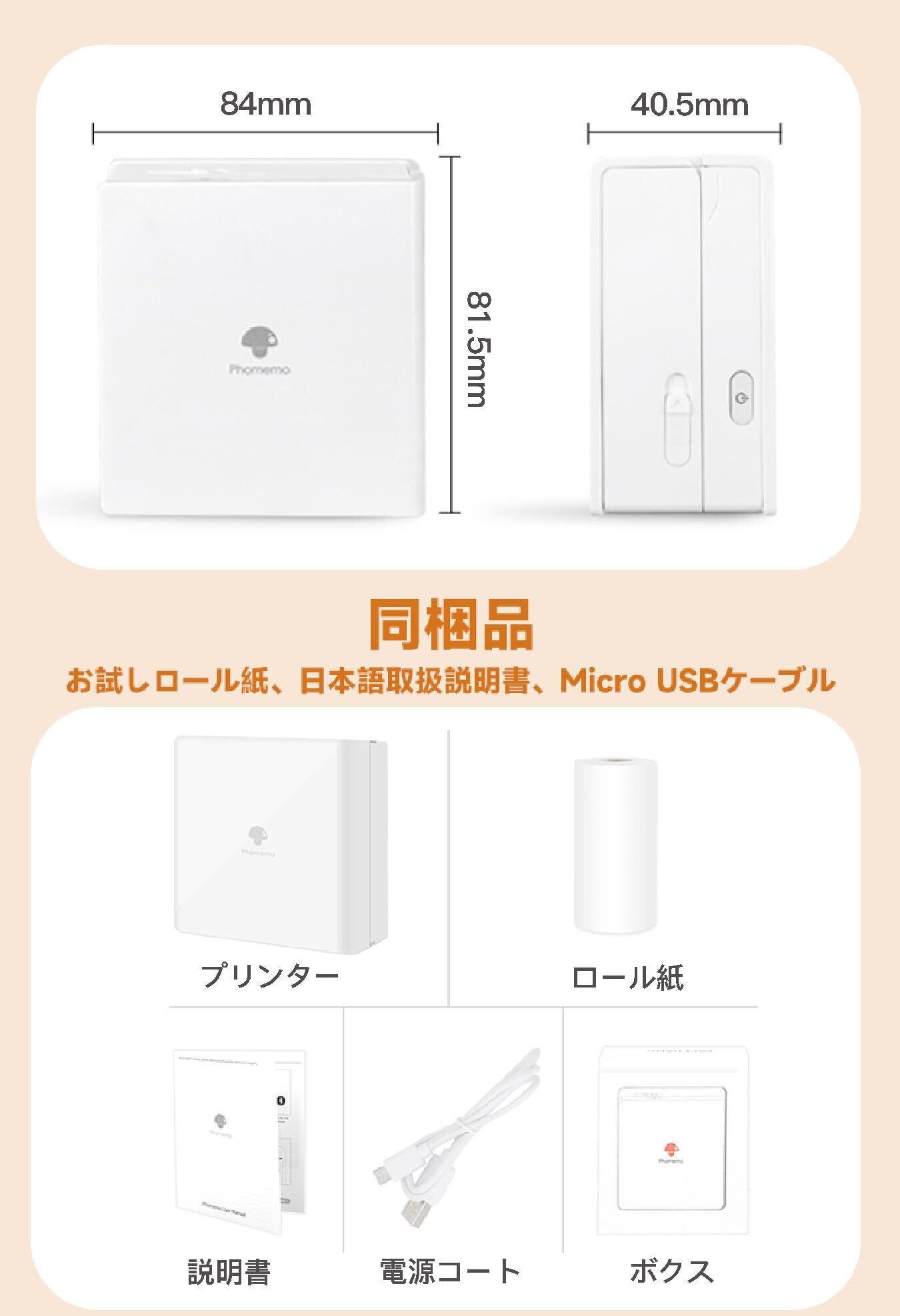 プレゼントにオススメ:スタイリッシュで可愛いなギフト包装を採用し、Phomemo-M02ミニプリンター本体x1点、白地シールx1巻、シルバーキラキラシールx1巻と透明シールx1巻が含まれています。(透明な用紙は本当に硬く、直接ちぎるのには向いていないので、はさみで切ることを勧めます。)コンパクトサイズ「86 x 82 x 42 mm」のサーマルプリンター「M02」は多機能ので、手帳やメモ好きな家族、友人、同僚、子供にクリスマス、ハロウィーン、感謝祭、正月や誕生日のプレゼントにオススメです