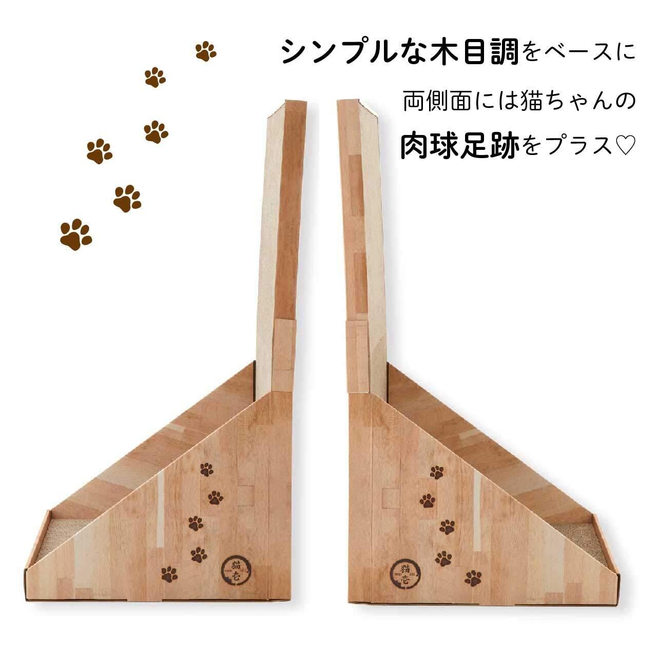 【シンプル&可愛いデザイン】高さ70cmの大きな爪とぎですが、シンプルな木目調のデザインなので、 リビングに置いてもお家のインテリアを邪魔しません。側面には猫壱のロゴと肉球模様を加え、可愛らしさも忘れていません