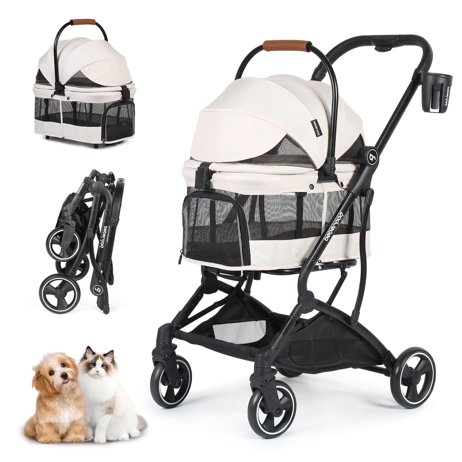 BEBEROAD PETS T3 ペットカート ペットカート 分離型 小型犬 折りたたみ 4輪 前輪360°回転 犬用バギー 犬用ベビーカー 多頭用 小型犬 中型犬 ペット キャリーカート いぬ用カートワンタッチ 折りたたみ 後輪ブレーキ付 多機能 散歩 外出便利 耐荷重20kg (T3-オフホワイト M-中型)