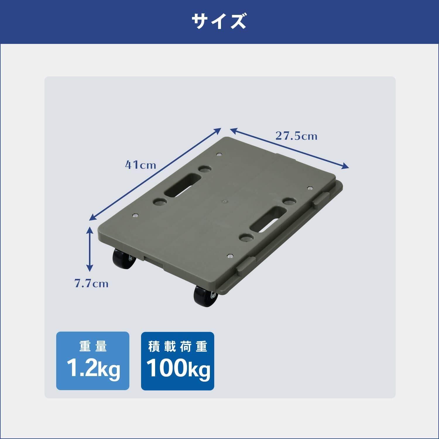 [山善] ミニ平台車 27.5×41cm 耐荷重100kg 縦横連結可能 スタッキング機能 キャリーカート ドーリー YRM-N50(OD) オリーブ