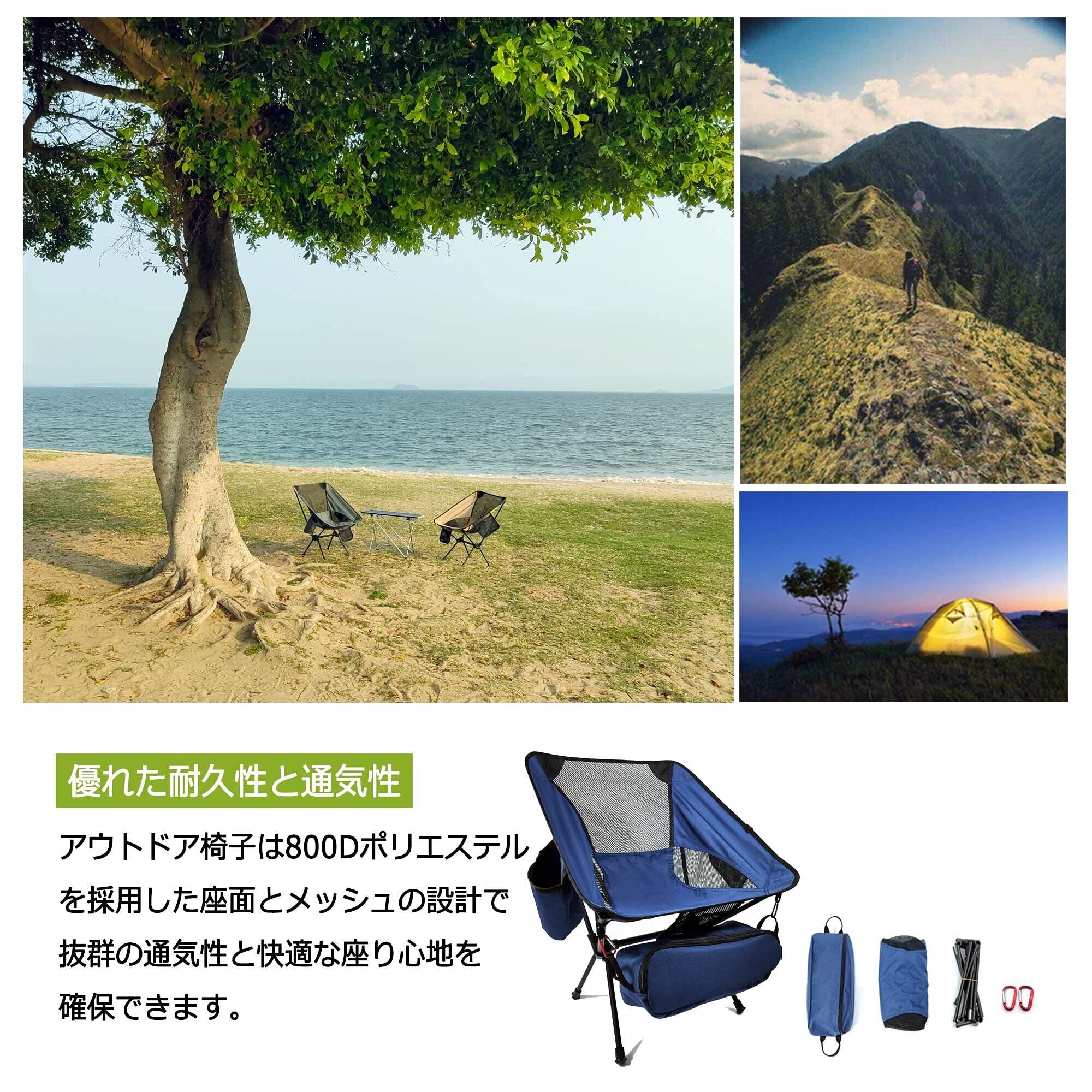【優れた耐久性と通気性】アウトドア椅子は800Dポリエステルを採用した座面とメッシュの設計で、暑い季節も蒸し暑くなく、抜群の通気性と快適な座り心地を確保できます。座面も防水加工し、雨でもタオルでちょっと拭くだけ座れます。さらに、座面を深くし、ハンモックのように体にフィットし、ゆったりと包み込まれる座り心地を実現したレジャーチェアです。