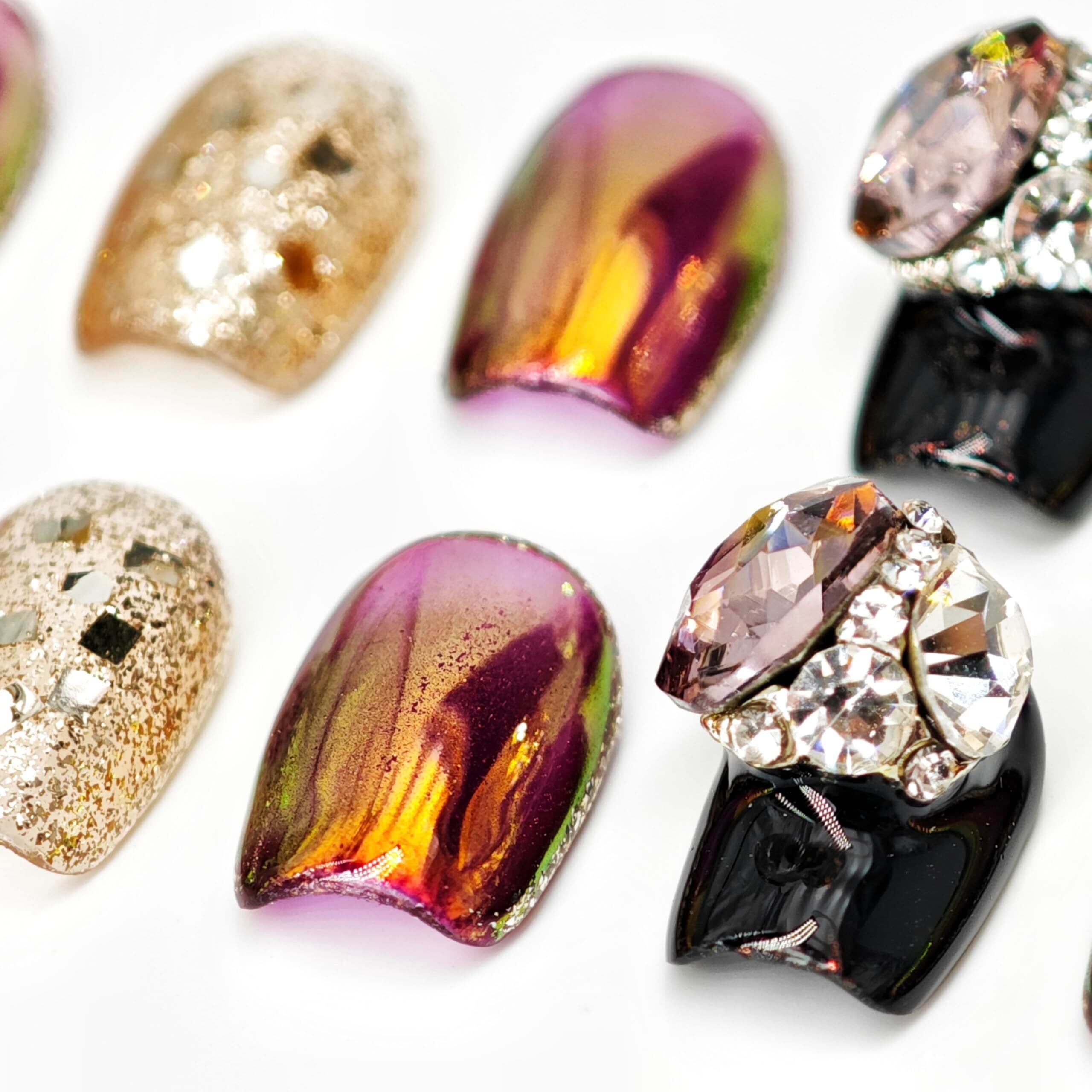 【手作りネイル】最高のマテリアルを選んで、すべて手作りで、丁寧に作られたネイルチップは、耐久性も抜群!サロンみたいな美しいネイルを、より短い時間と安い費用で自宅も実現できちゃいます。何度も使えるから繰り返し使用ことができます。