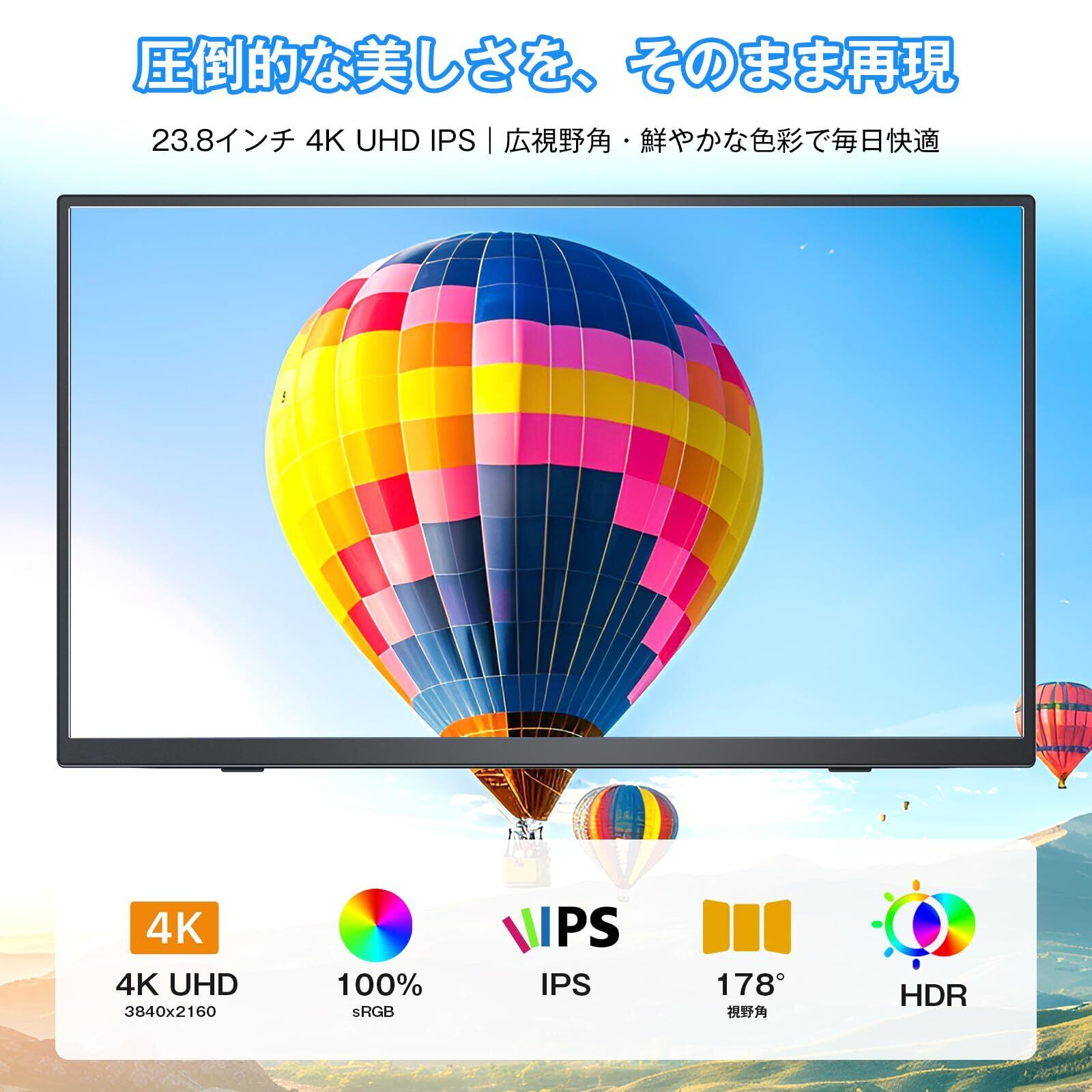 23.8インチ 4K モバイルモニター UHD 3840*2160 持ち運び VESA対応 125%sRGB ポータブルディスプレイ 大画面非光沢 広色域 大型サブモニタ 自立型スタンド ゲーミングモニター IPS液晶パネル USB Type-C/標準HDMI端末/Micro USB-B PS4PS5/XBOX/Switch/PC/Macなど対応 リモートワーク