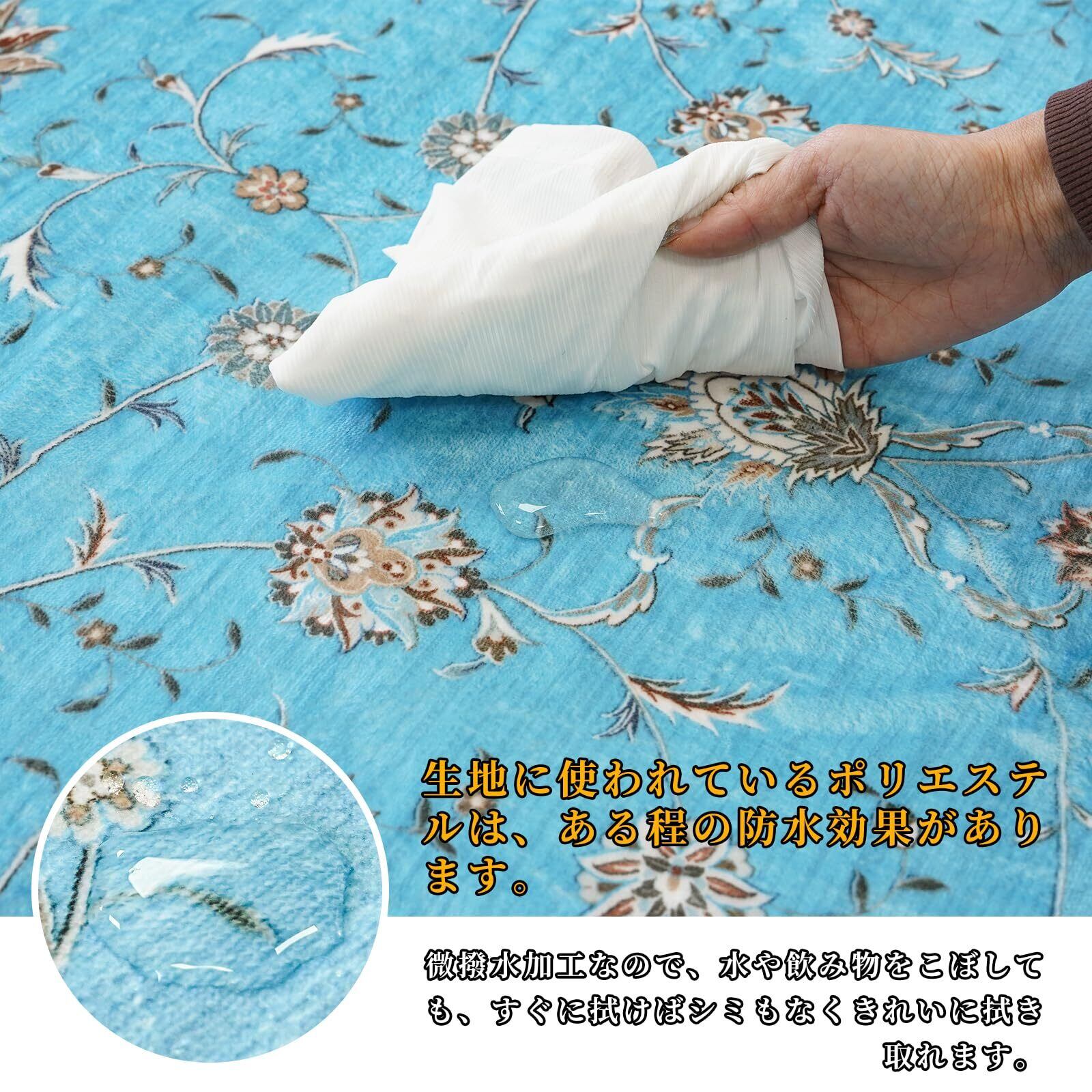 カーペット ラグマット 洗える 滑り止め ふわふわ おしゃれ 絨毯 オールシーズン ホットカーペット対応 じゅうたん ペルシャ風絨毯 軽量 耐磨耗性 低反発 抗菌防臭 防ダニ リビングマット (ブルー, 90X150cm)