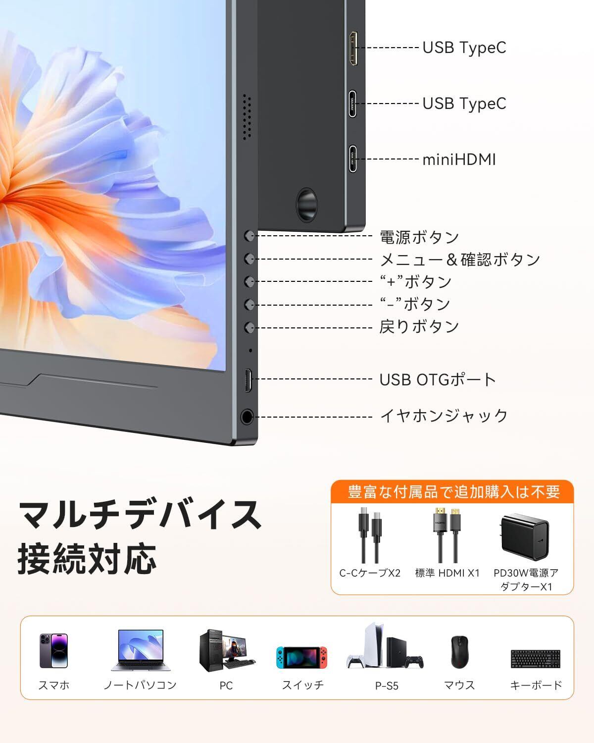 【超軽量544g・真心こめたおもてなし】 UPERFECTポータブルモニターは最薄部約5mm・重量約544gの軽量スリムボディで、持ち運びに便利。1W内蔵スピーカーで音声もクリアに再生。軍用級アルミ合金筐体が衝撃から内部を保護。UPERFECT品質&サポート:90日間の完全安心トライアル — ご満足いただけなければ、すぐに全額返金。専任の担当者制 — 顔の見える担当者が、最後まで責任を持ってサポート。アクセサリー永久無料 — 純正ケーブルやアダプターは、永久無償で提供。1年間の付きます。PSE認定済!不明点やサポートが必要な場合は、お気軽にお問い合わせください。製品の使用について何かご不明な点、万が一、期間に初期不良がございましたら、お気軽に注文履歴よりまでお問い合わせください。 必ず最善を尽くします。