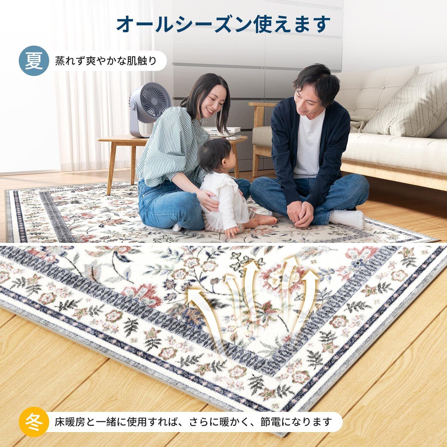 カーペット ペルシャ絨毯 ラグマット 2畳 春花のブルーラグ ペルシャ絨毯風 160x200cm 洗濯機で洗える 滑り止め ラグ花柄 抗菌 防臭 防音 室内用 全季節対応