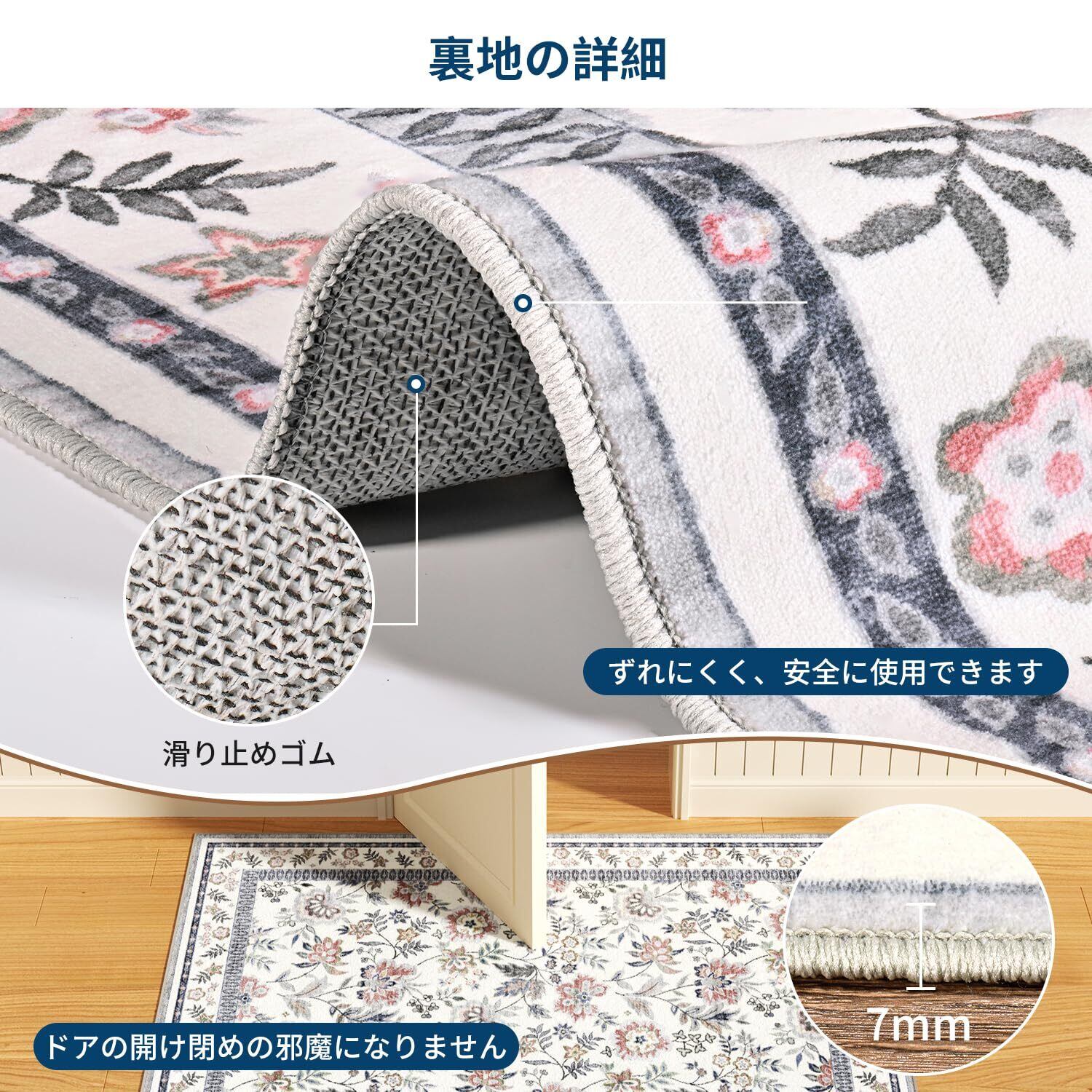 【滑り止め、安心して使用可能】カーペットは超薄型設計で、床に平らに敷くことができ、端がめくれてつまずく心配がありません。同時に、TPRゴム底を使用しており、優れた滑り止め性能を持ち、床にしっかりフィットして移動せず、安心してご使用いただけます。