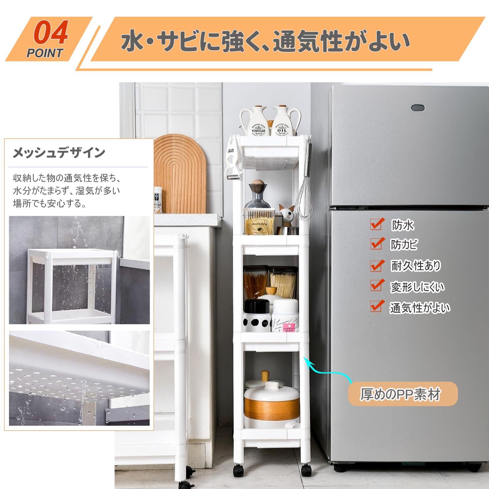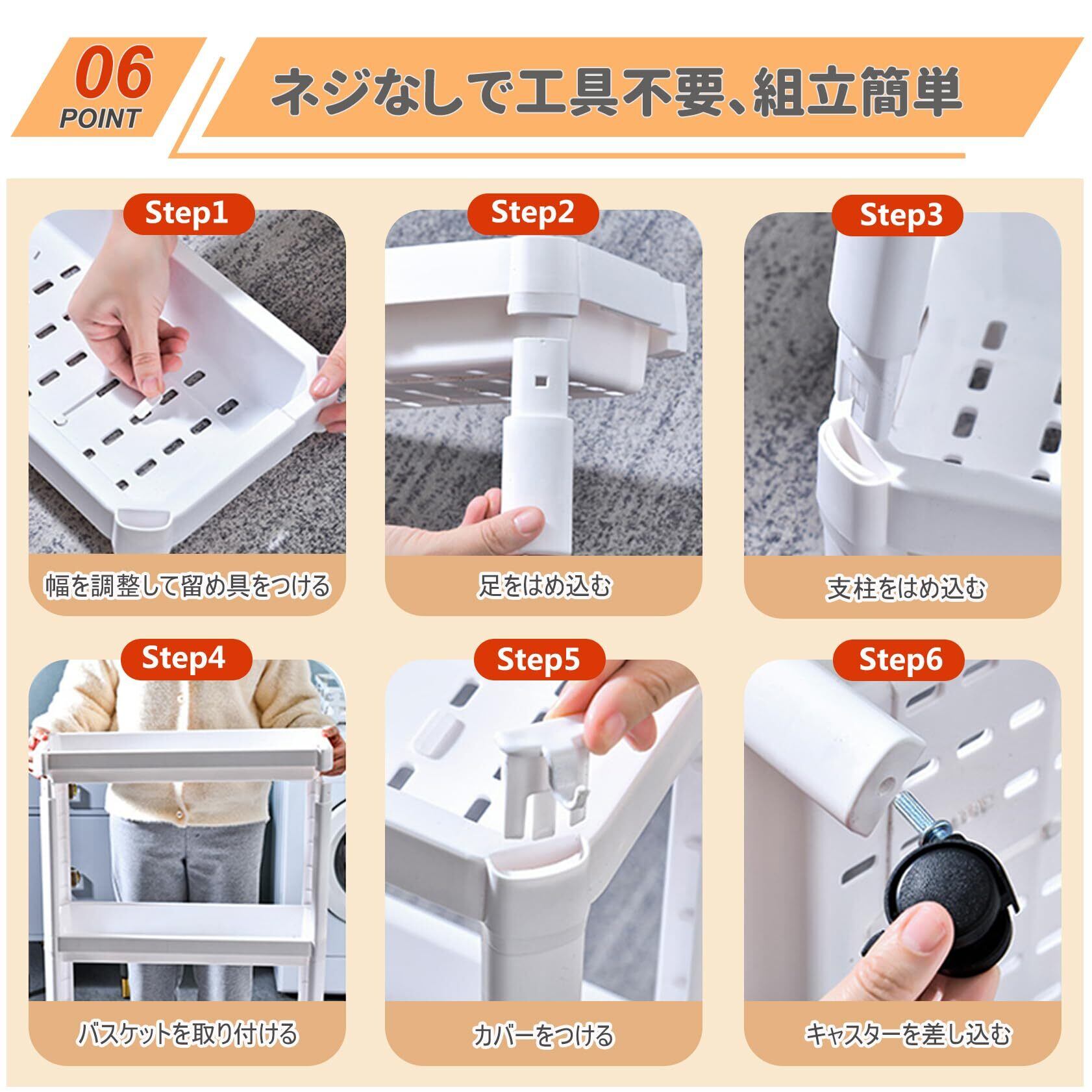 幅伸縮可能隙間収納ワゴン18cm 20cm 22.5cm浴室ラック キッチンストッカー キャスター付き ホーム収納カート キッチン収納ラック スリム 物置バスケット 整理棚 ホワイト 3段(18cm-22.5cm)