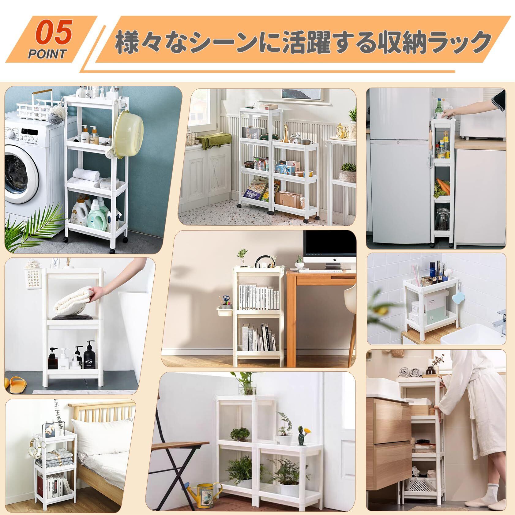 ✲【省スペース・移動便利】一体化のコーナーフックと洗面器フックが付いて、収納能力が更にアップします。4つのキャスター付きで360°自由自在に回転し、お気軽に移動できます。また、二つのキャスターにはブレーキが付き、本体をお好きな場所に固定させ、さらに安心安全です。掃除機をかけるとき、バラバラになっている子供のおもちゃやゲーム周りなどをこのラックに素早く片付け、簡単に動かせるので便利です。そして、キャスターを使用しなくても商品が依然として安定に利用できます。