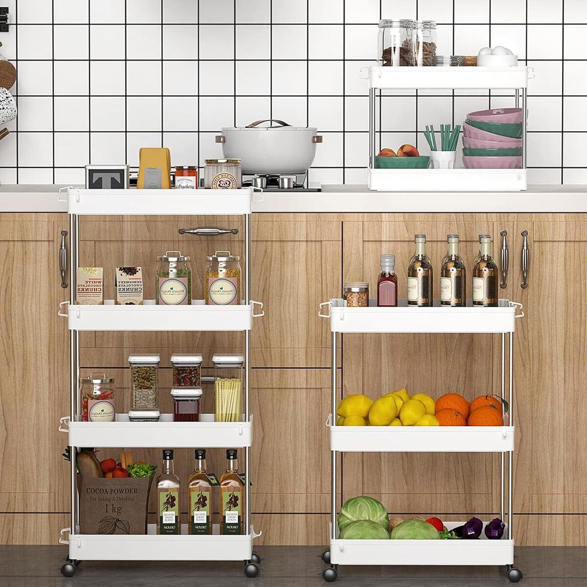 【多様な活用場所】キッチン用品、日用品、雑貨などさまざまなアイテムをまとめて収納し、さまざまな場面の収納ニーズに応えることができます。キッチンだけでなく、洗濯室、トイレ、リビングルームなどさまざまな場所に配置することができ、便利で実用的です。