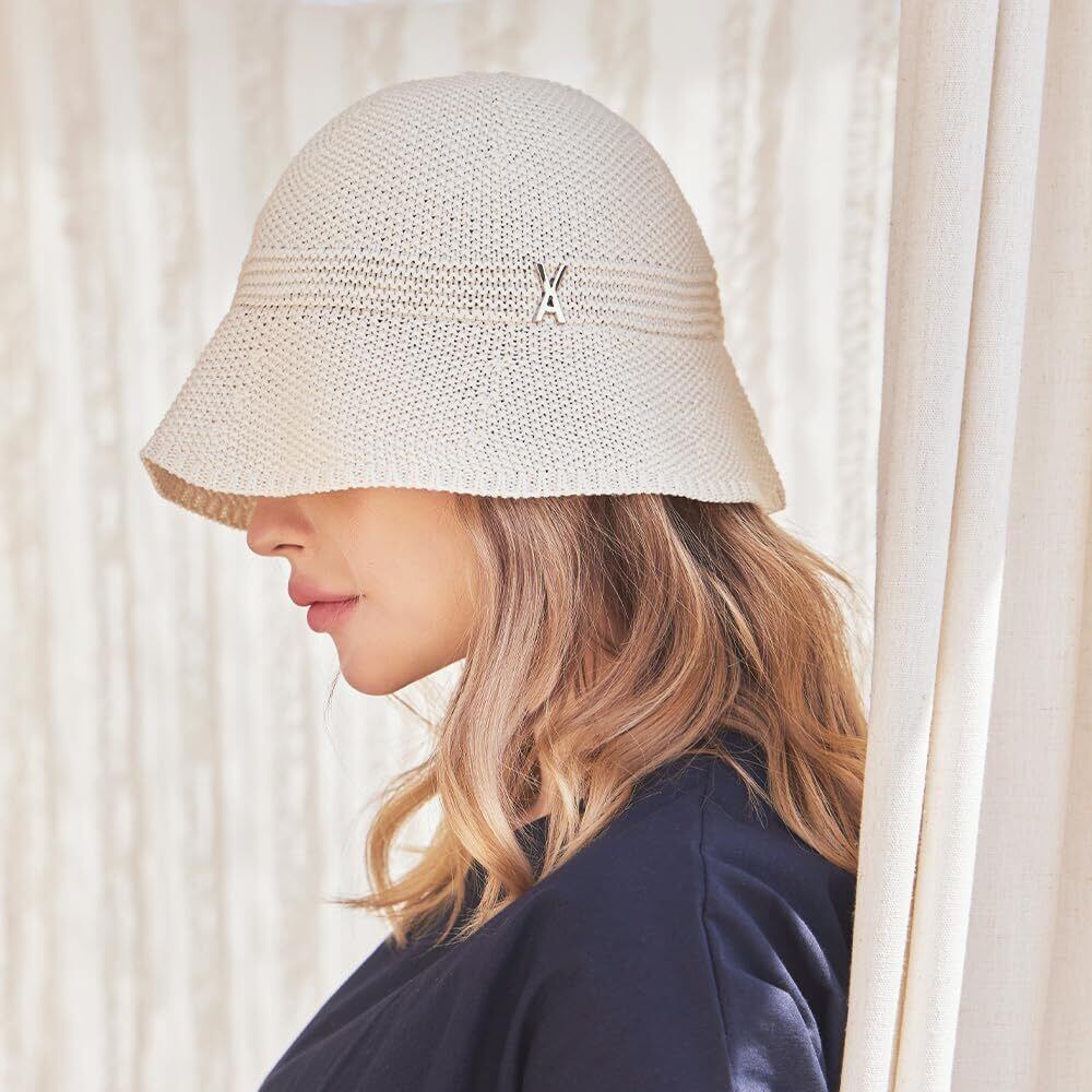 バザール Stud Logo Summer Knit Bucket Hat 全4color ユニセックス バケハ 韓国ブランド 帽子 紫外線防止 UV対策 深め 小顔効果 SNS話題 芸能人着用