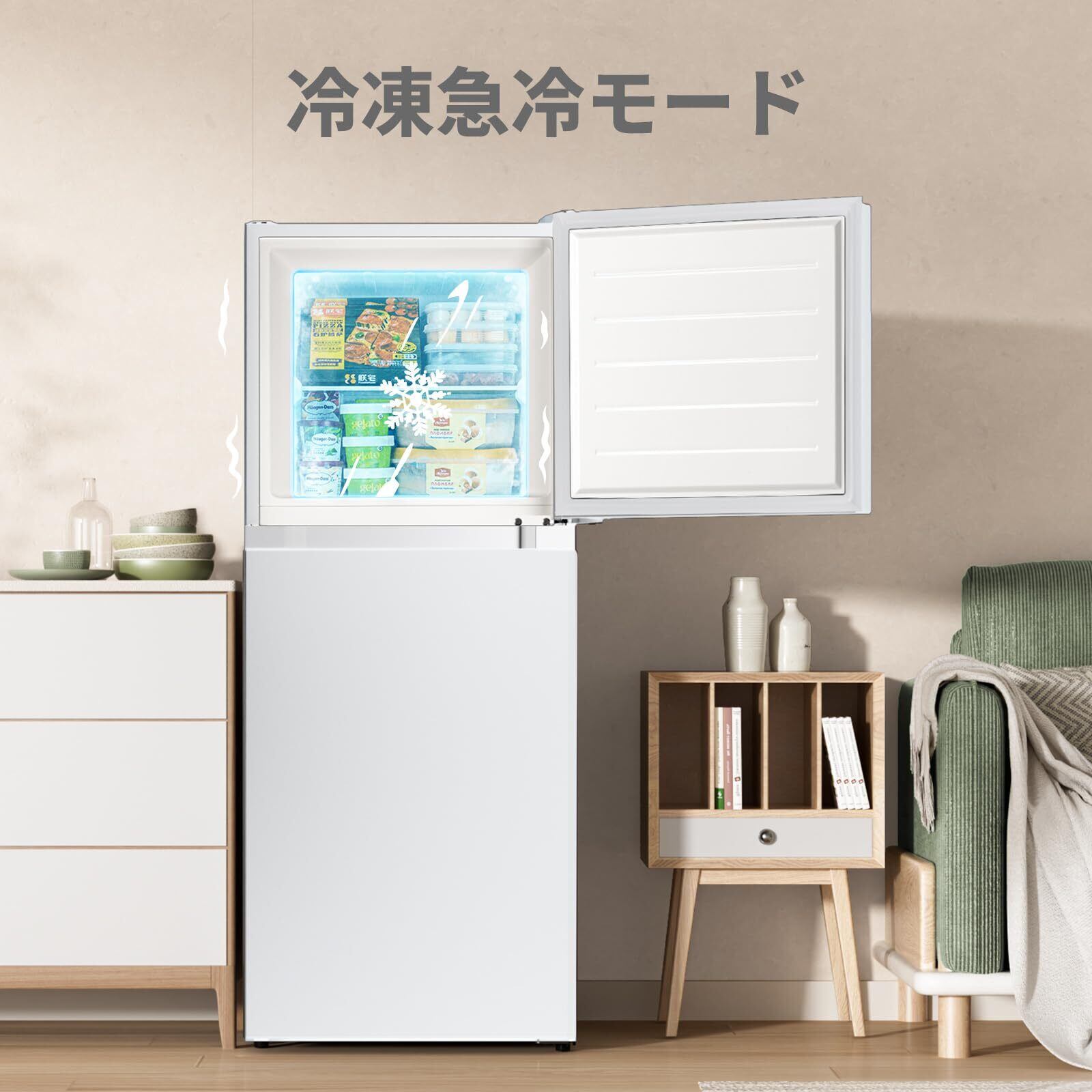 COMFEE' 冷蔵庫 132L 幅47cm 大容量 急冷モード 耐熱天板 省エネ コンパクト スリム 小型 右開き 2ドア 一人暮らし RCT128WH1JP(E) 2025モデル ホワイト