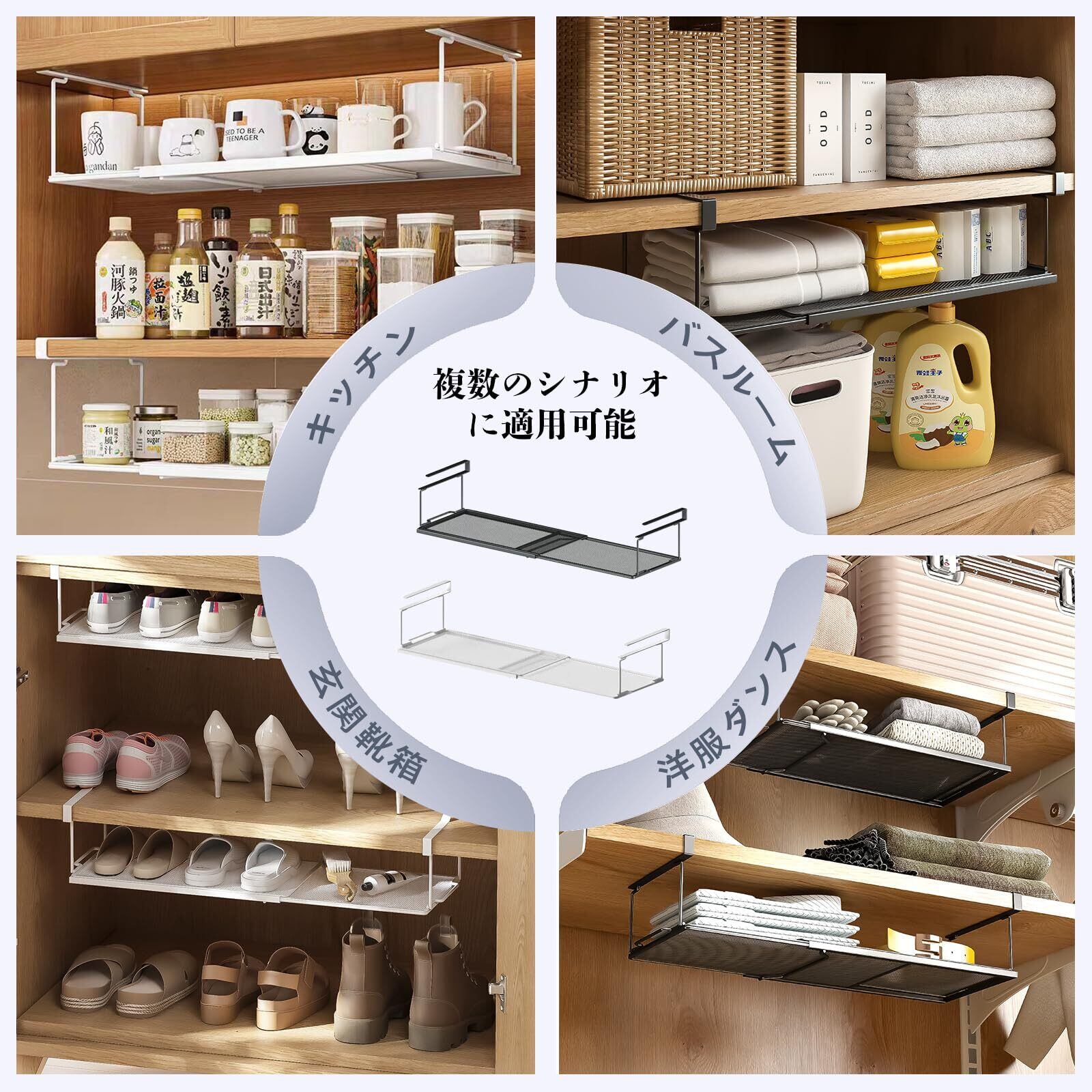 【100%満足サービス】:24時間対応のサービスを提供しています。質問があるか、棚の下のオーガナイザーの寸法に興味がある場合は、お気軽にお問い合わせください。無料での交換または返金をご提供いたします。