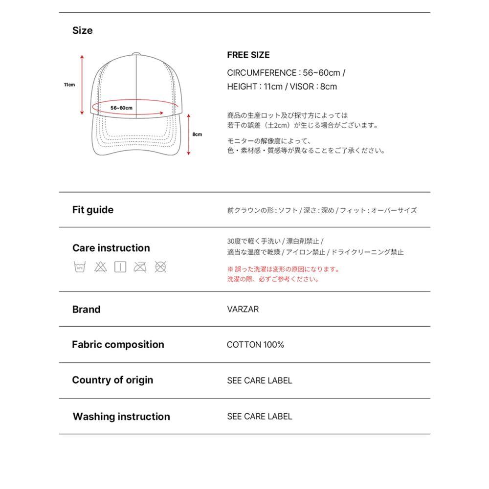 【オーバーフィット】 様々なサンプリングを経て、研究に研究を重ねて見出したVARZARならではの理想的なオーバーフィット。 深めでこだわりのカタチが特徴のボールキャップです。 長時間かぶっていても疲れにくく、髪にも跡が付きにくいため、被ったり脱いだりを繰り返してもスタイルを維持できます。 どんなスタイルにもオシャレに合わせられるのでメンズ、レディース問わず、年齢も幅広くお使いいただけます。