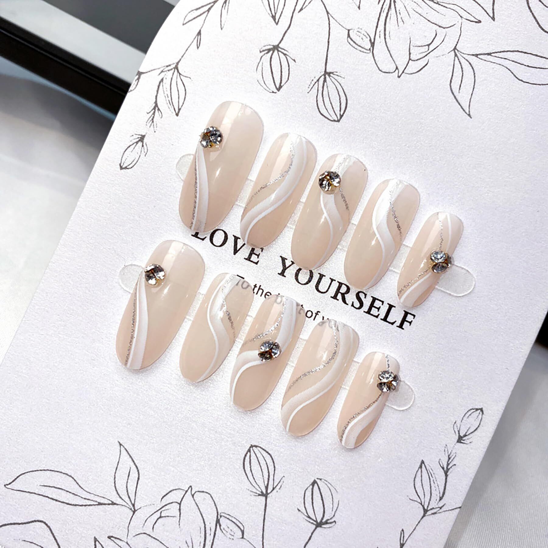 【上質なABS素材】高品質のABS素材で作られた結婚式 ネイルチップ、耐久性があり、長持ちし、環境に優しく、繰り返し使えるのも便利です。パーティ、休日、デート、写真、成人式、卒業式、プロム、披露宴に適用します。