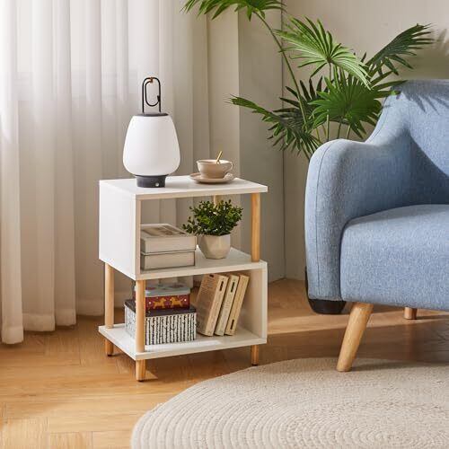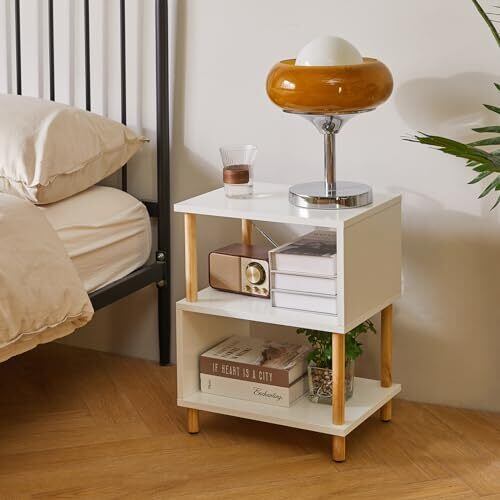 Aibiju S字 ラック オープンシェルフ 小さい 幅40×奥行30×高さ50.5cm オープンラック サイドテーブル 3段 木目調 ナイトテーブル 狭い空間 白/木の色 YD-TM152W