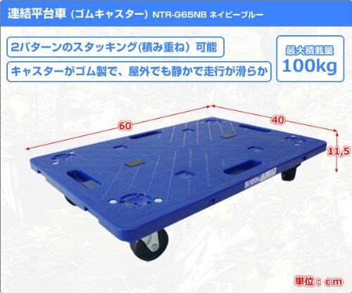 [山善] 連結平台車(ゴムキャスター)60×40cm【4台組お得セット】【日本製】ネイビーブルー NTR-G65NB×4