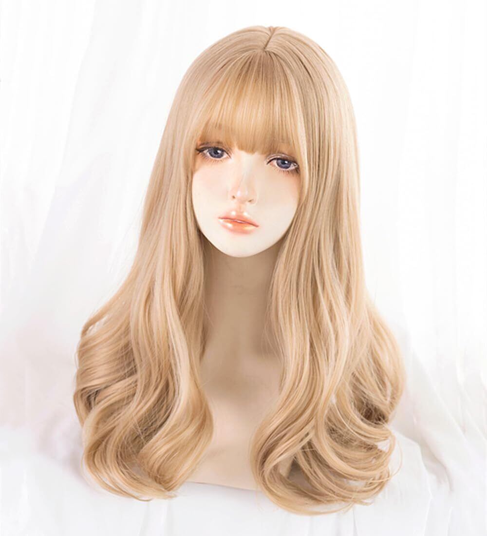 ✬ 大人気原宿風: ロング ゴールド 金髪 ウィッグ、ヘアネットを贈る。ヘアの長さ:55cm (誤差3 cm)。