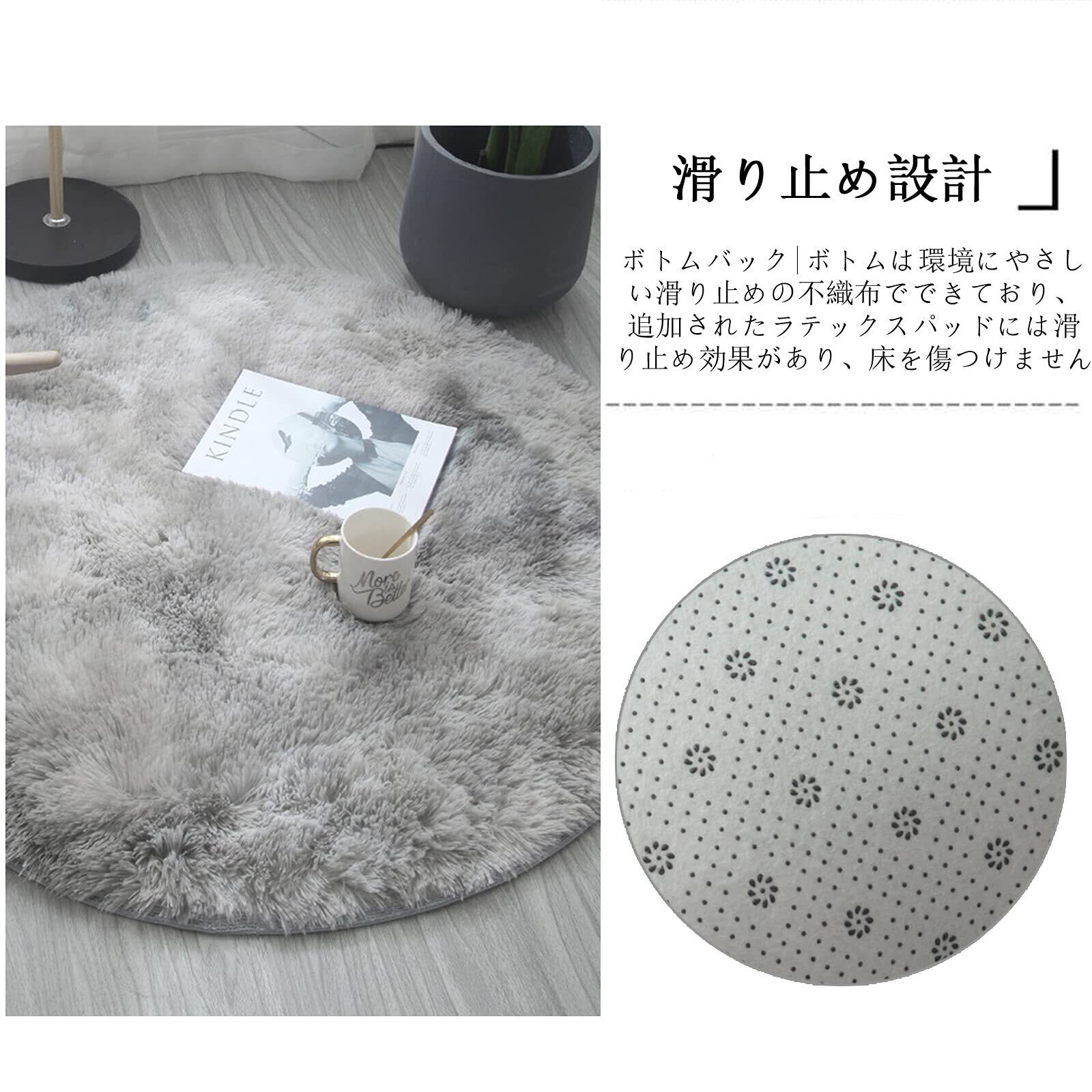 ラグマット ラグカーペット 滑り止め付 洗えるラグ 抗菌 ふわっと手触り優しいフランネルラグ 折り畳み (グレー, 円形(直径120cm))