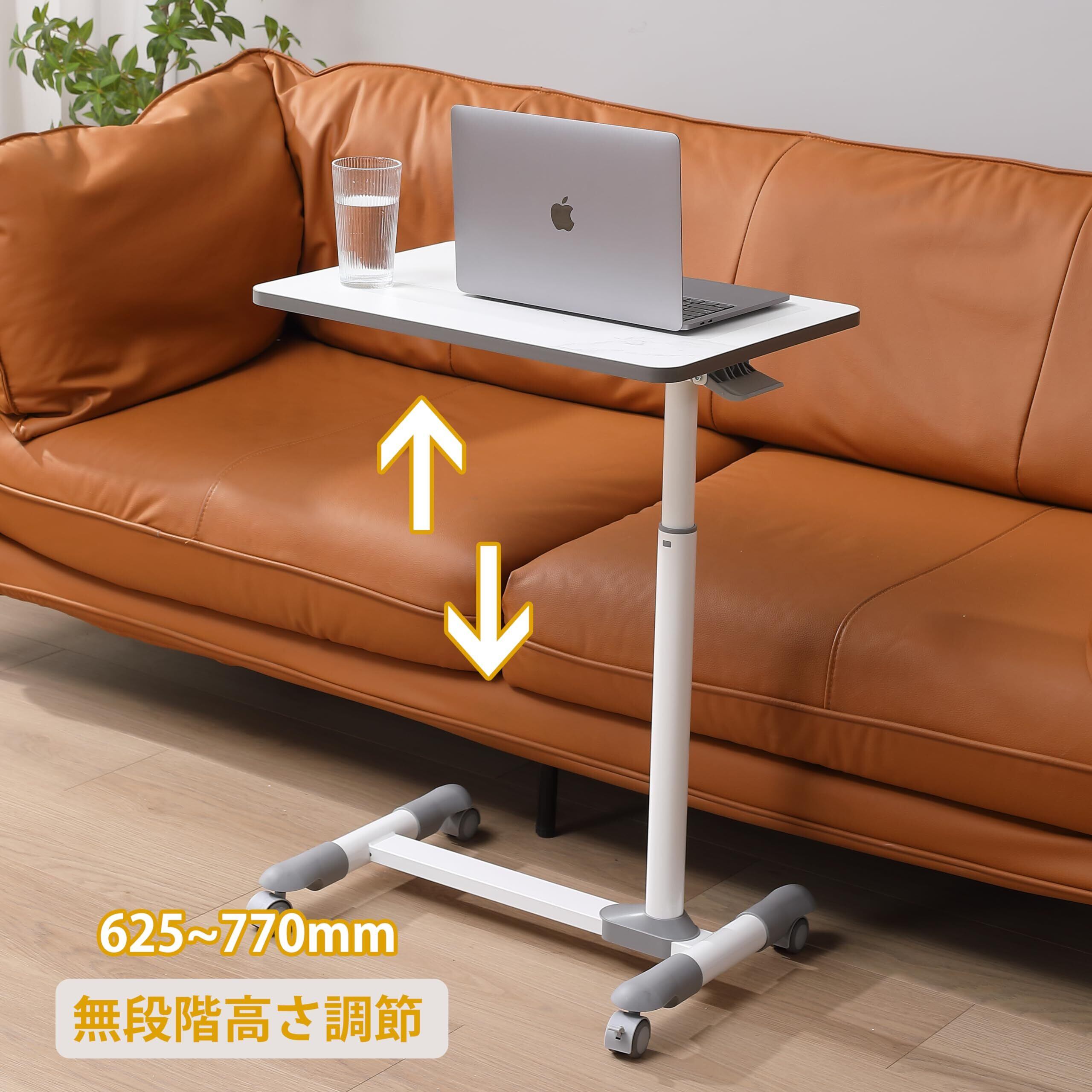 ETHU サイドテーブル ガス圧昇降式 ベッドサイドテーブル 無段階高さ調節 介護用ベッドテーブル キャスター付き 大理石調