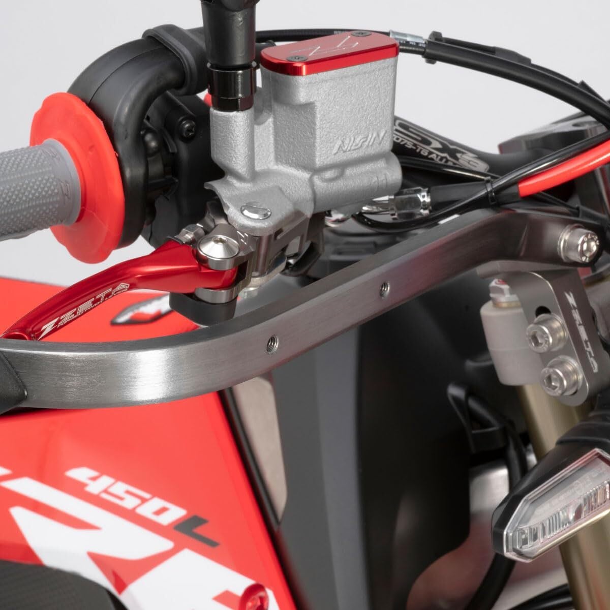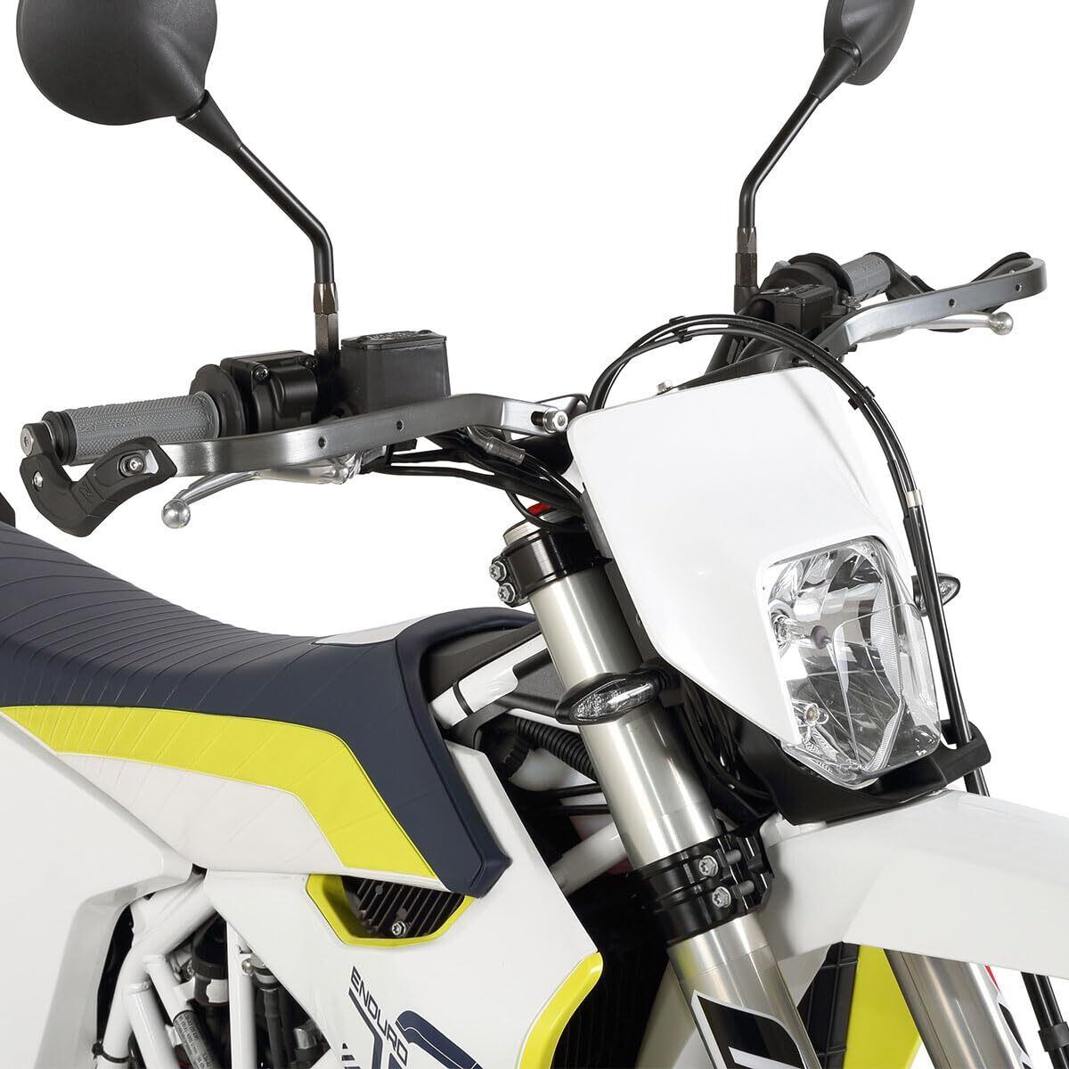 手が触れやすいハンドガードエンドを湾曲させて避けた形状(ベンド)は、スポーツライディングでの体の動きを妨げにくい。ベント部分には耐久性のあるプラスチックバンパーを標準装備。