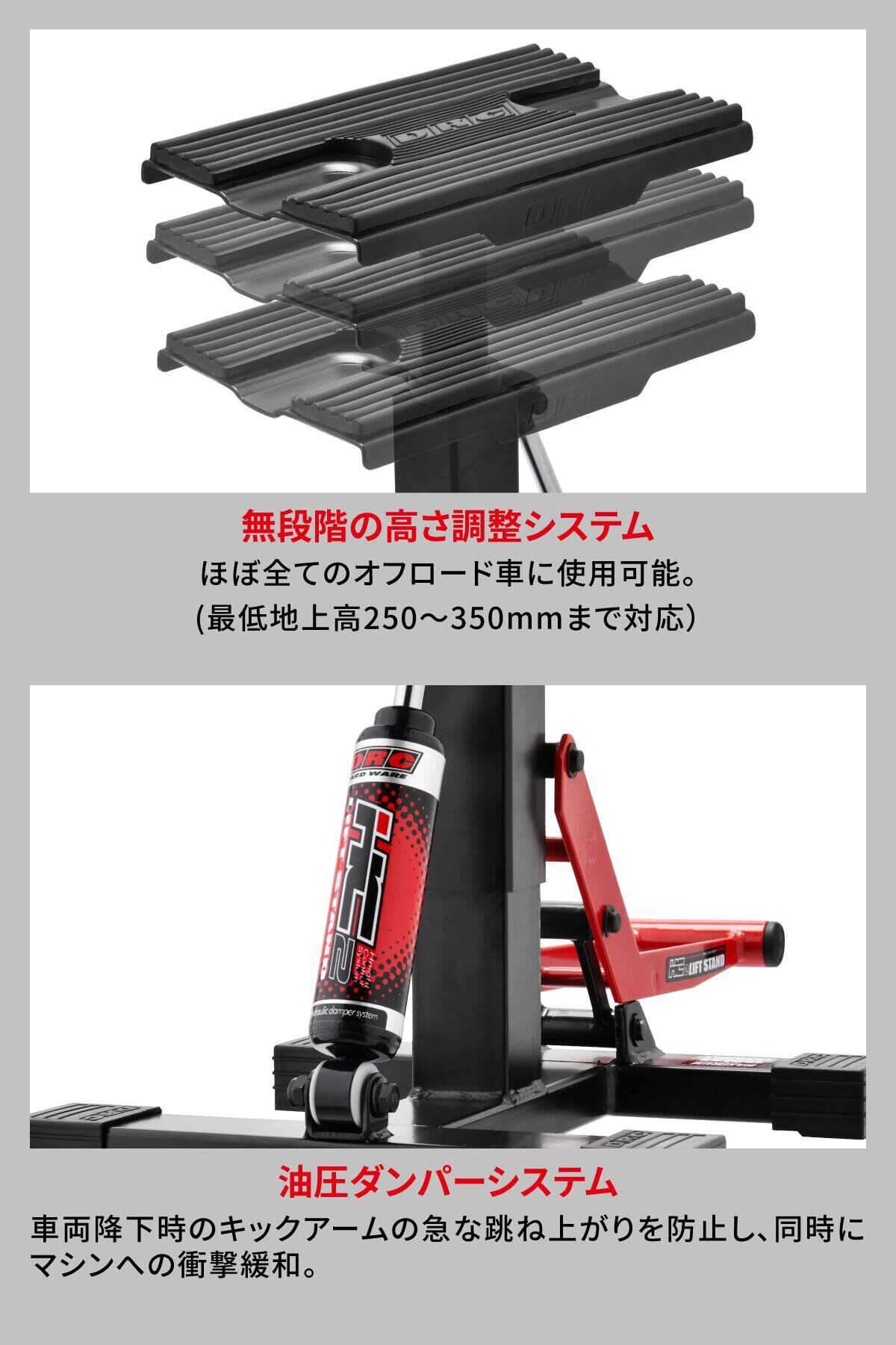 ディーアールシー(DRC) ミニバイクからフルサイズまで対応 HC2リフトスタンド 多機能 無段階高さ調整 油圧ダンパー 最低地上高250〜350mmmまで対応 オフロードバイク トレール モトクロス エンデューロ ブラック/レッド F4274(旧品番:D36-38-312) ダートフリーク DIRTFREAK