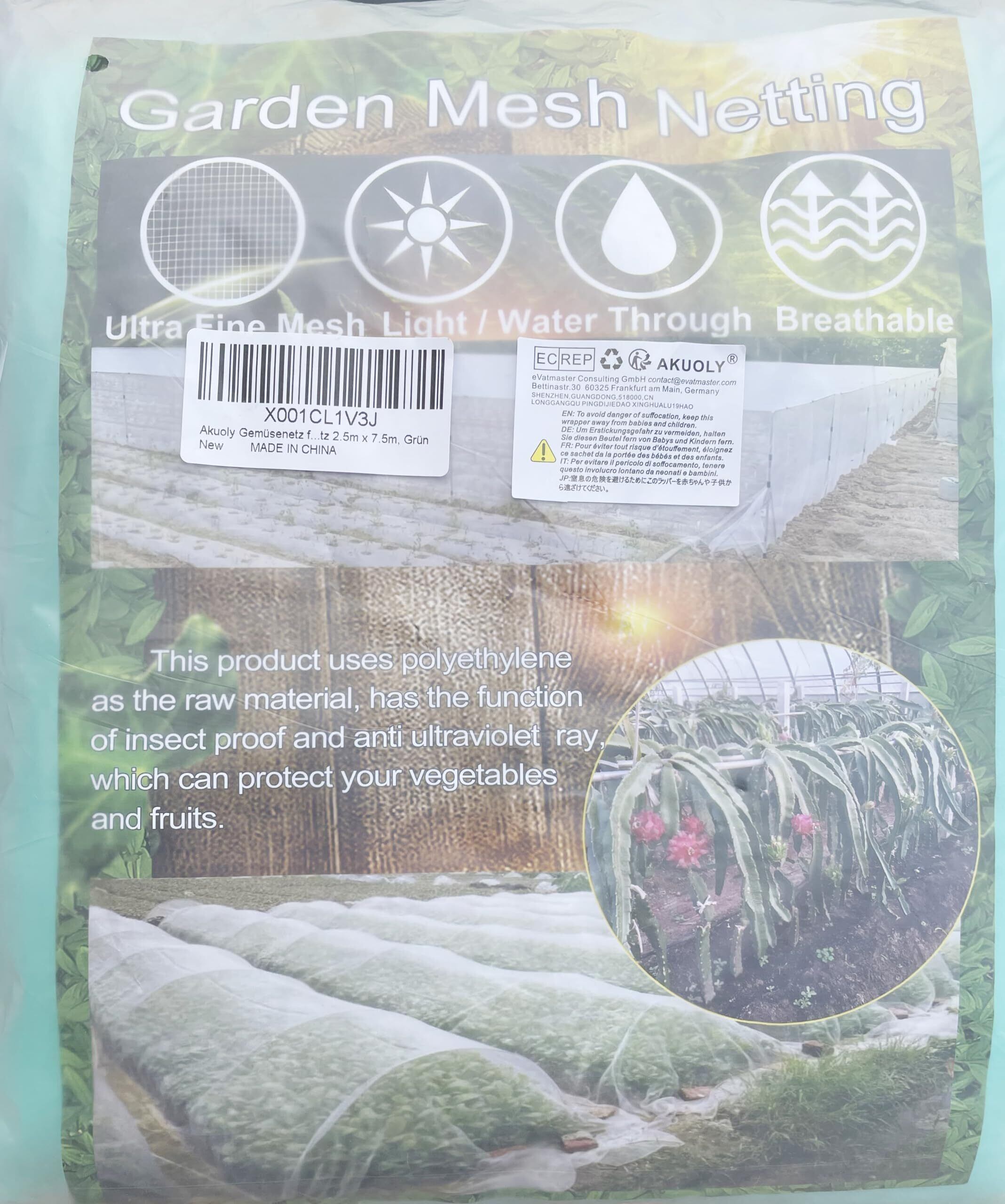防⾍ネット 菜園プランター 防⾍網 花壇適⽤ ⾍ 除け網 家庭菜園 畑野菜 園芸 農業資材、2.5m x 7.5m