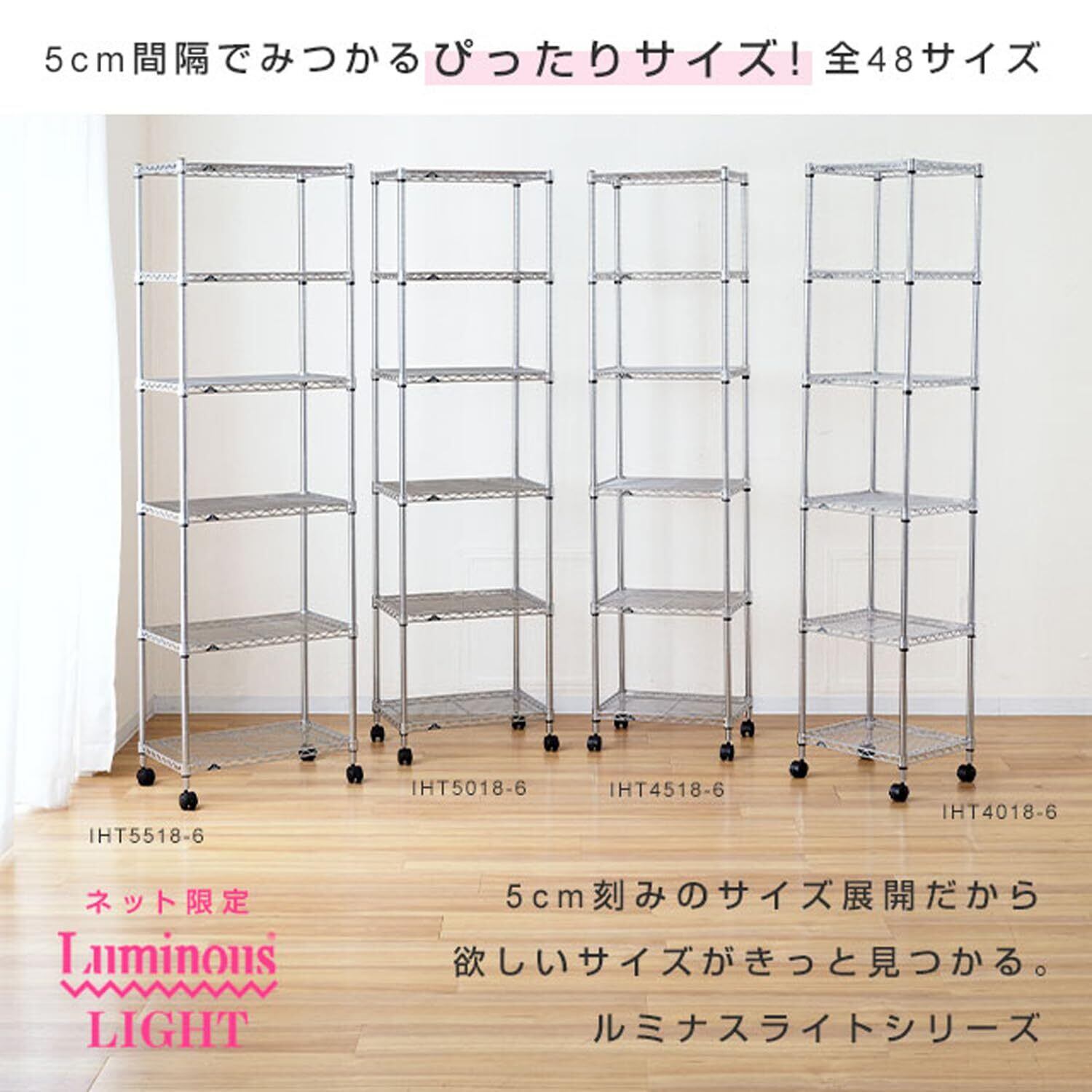 ドウシシャ ルミナス ライト スチールラック 収納棚 キッチン収納 幅45 6段 IHT4518-6 耐荷重150kg コンパクト スリム サビに強い 防錆加工 キャスター付き 豊富なカスタムパーツ ポール径19mm 幅44.5×奥行34.5×高さ174.5cm
